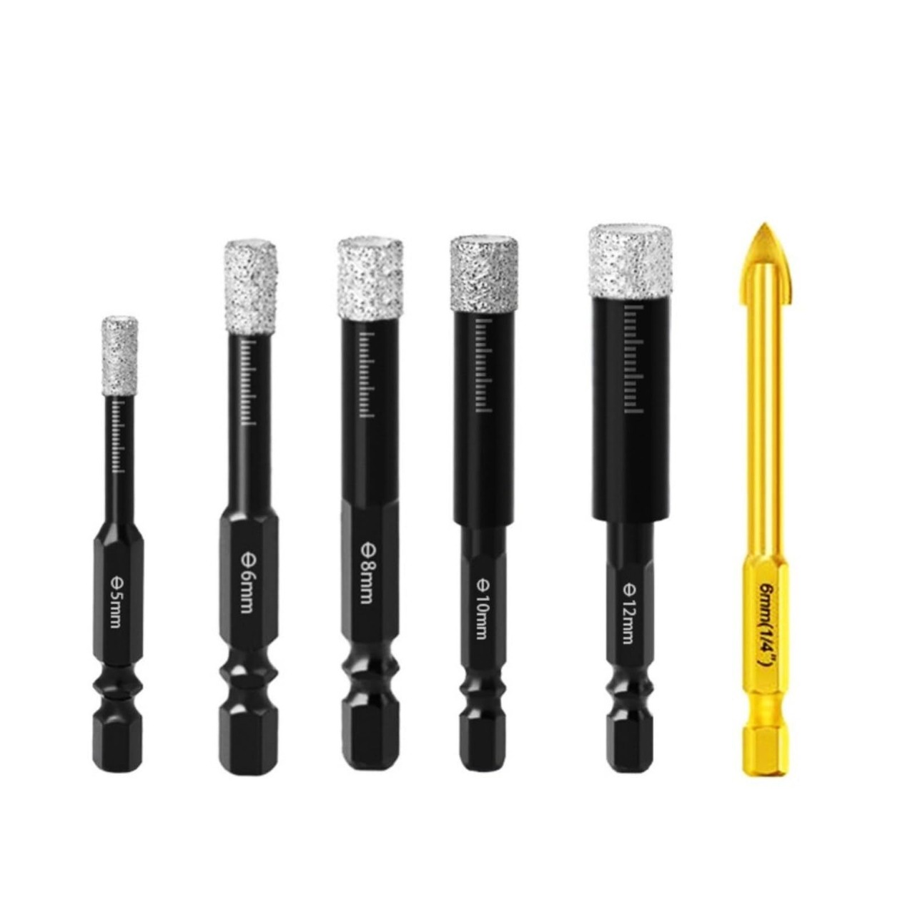 【在庫セール】ダイヤモンドホールソー 六角軸 真空ろう付けされたダイヤモンド シャンクが付いている乾燥した陶器穴あけドリルのセット 6本 5mm/6mm/8mm/10mm/12mm コアビット ガラス、セラミック大理石花崗岩タイル用ホールソー | ニコニコSHOP