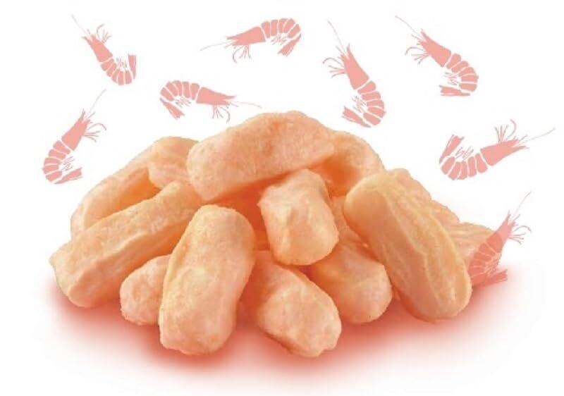 原材料:植物油脂(国内製造)、もち米(国産)、エビシーズニング、食塩、えび/トレハロース、調味料(アミノ酸等)、着色料(ベニコウジ、カロチノイド)、香料、(一部にえび・大豆・鶏肉・豚肉を含む)