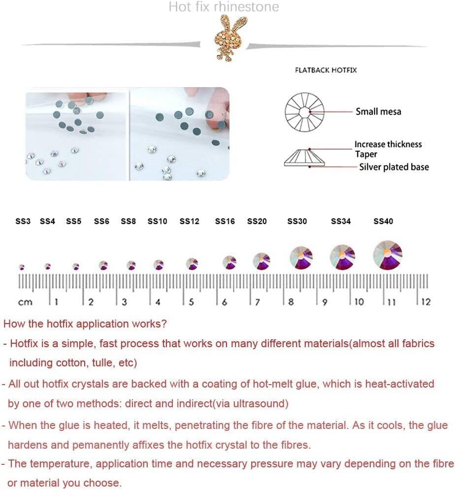 【使い方】フラットバック(平底)。ホットフィックスラインストーン。アイロンや、専用のボンドにて貼り付けることができます。