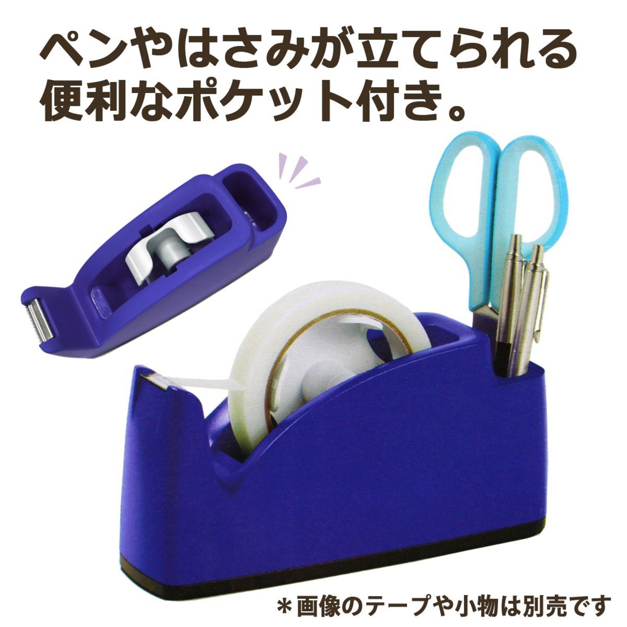 プラス テープカッター ペン立てポケット付き TC-201 ブルー 31-243