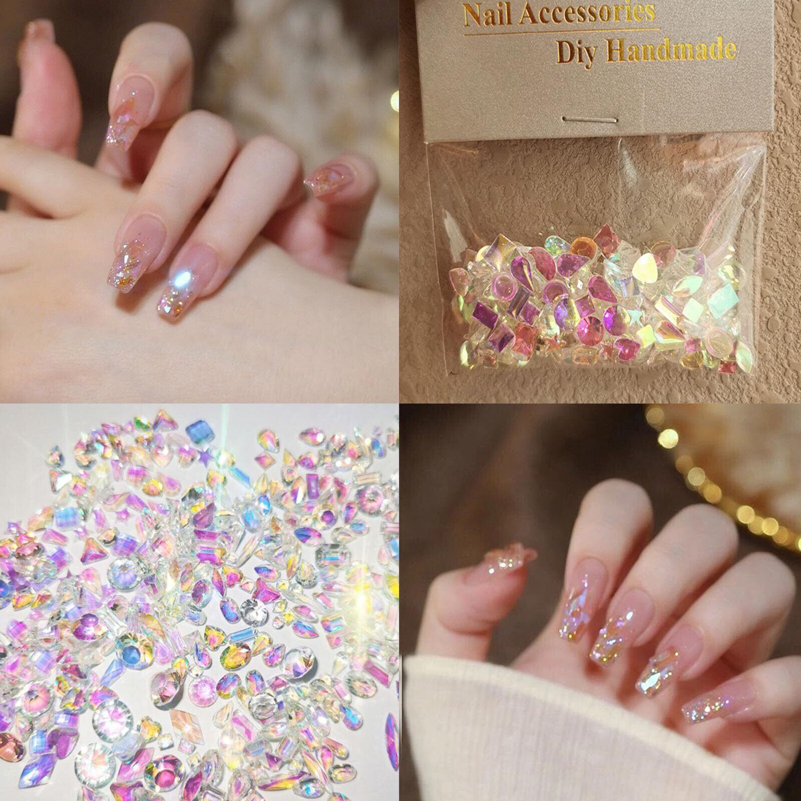 【ネイル クリスタル】この3DオーロラABカラーネイルアートドリルは、约120個ミックススタイル、複数のデザインとさまざまな形状で提供され、クラフトに輝きと魅力を加え、爪をより明るく魅力的にします。スタイリッシュで機能的なガラスフラットバックラインストーンセットです。