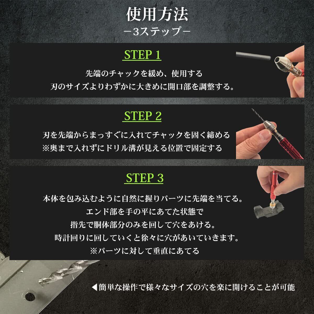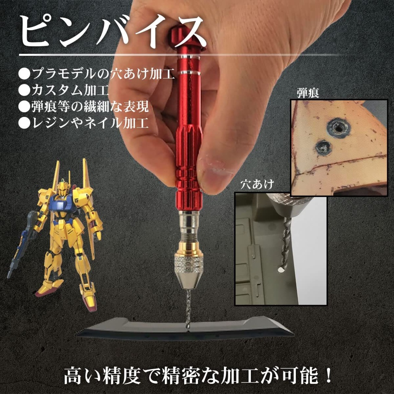 プラモデルなどの精密な穴あけ作業時に活躍する高精度なピンバイス。 木工作、レジンアクセサリー、プリント基板の穴あけや下穴開けなどで幅広く活用することができます。