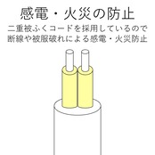 ■電源コードには、一般社団法人日本配線システム工業会規格(JWDS0010)に適合した二重被ふくコードを採用していますので、断線や被ふく破れによる感電・火災の防止に有効です。