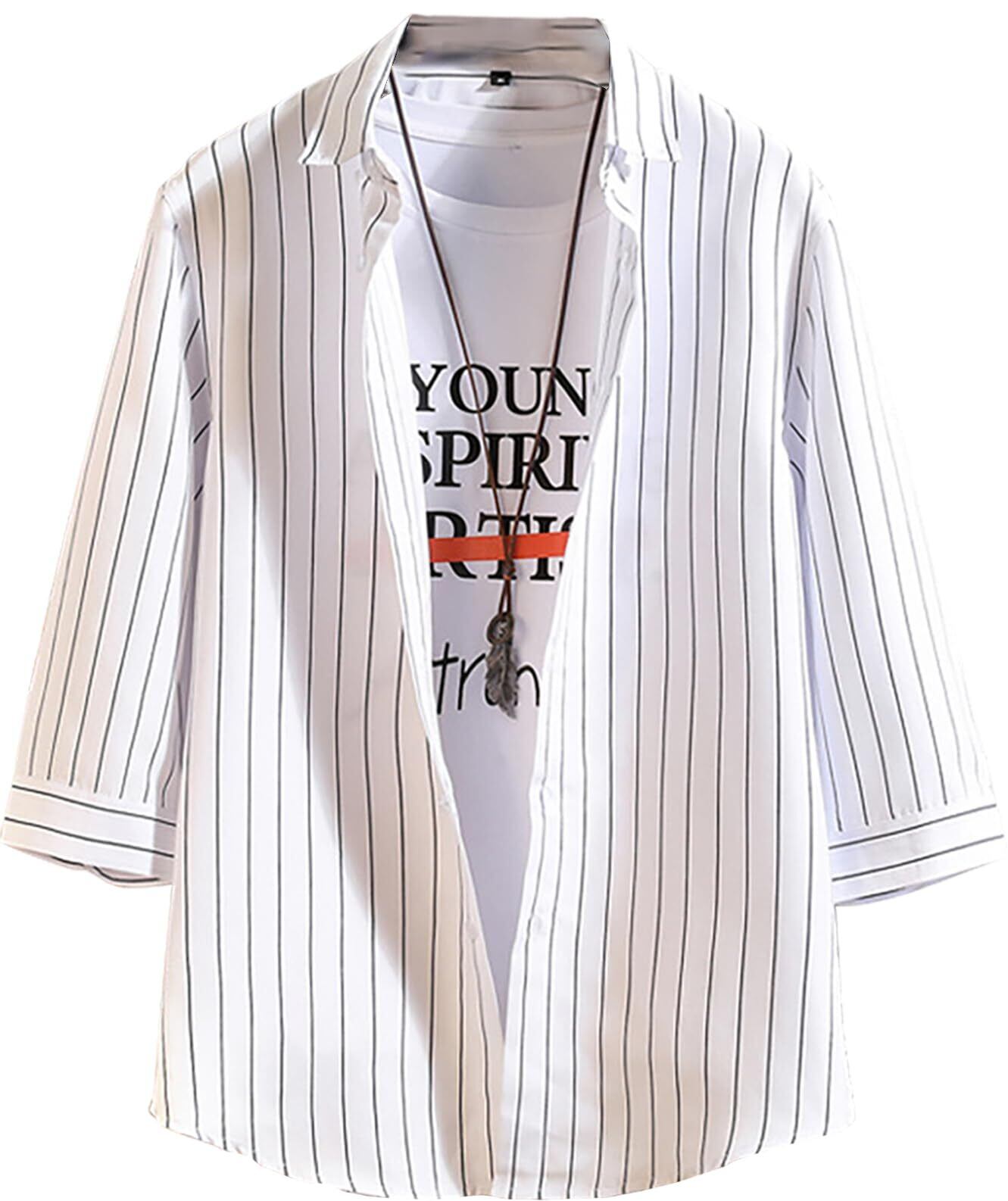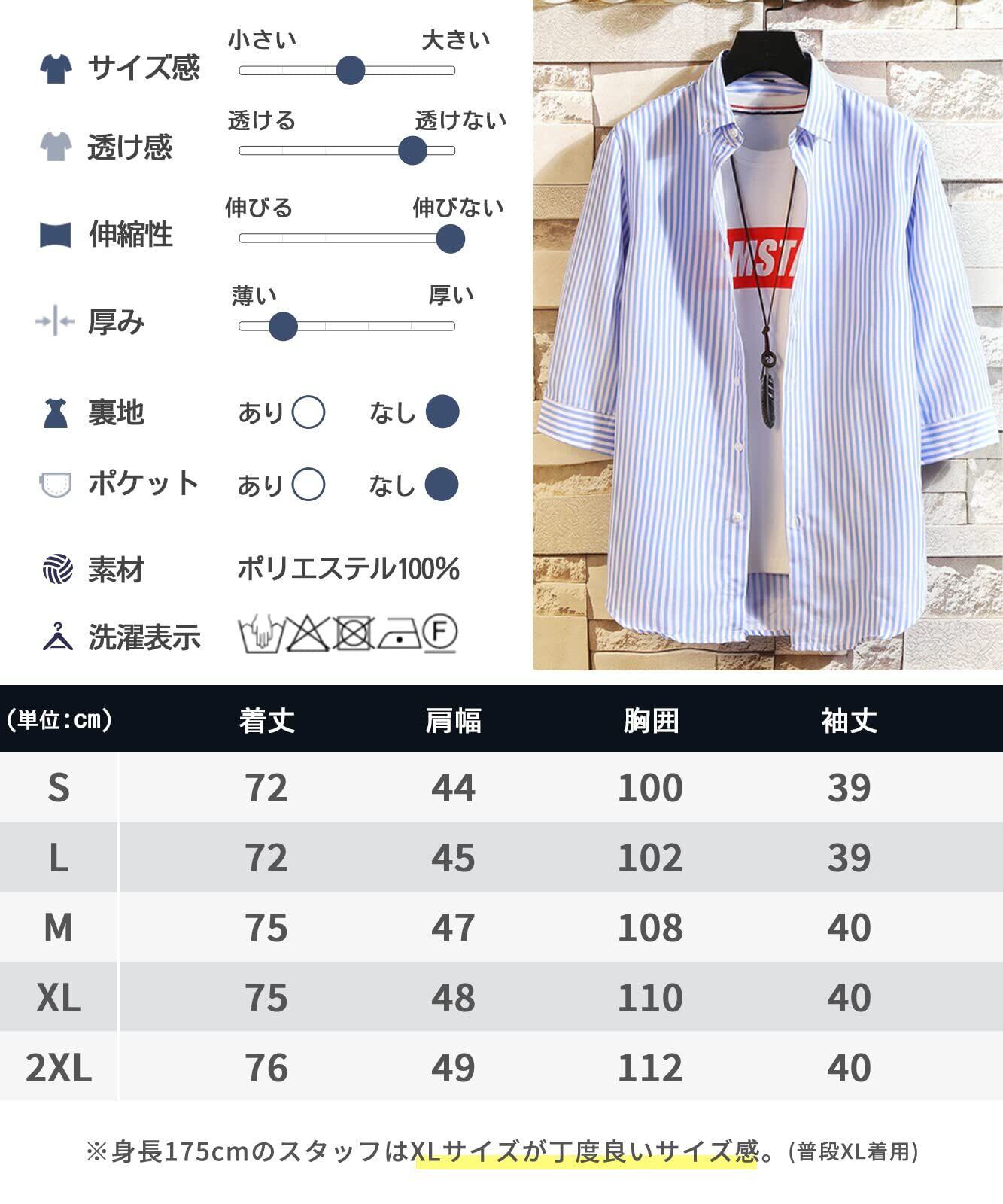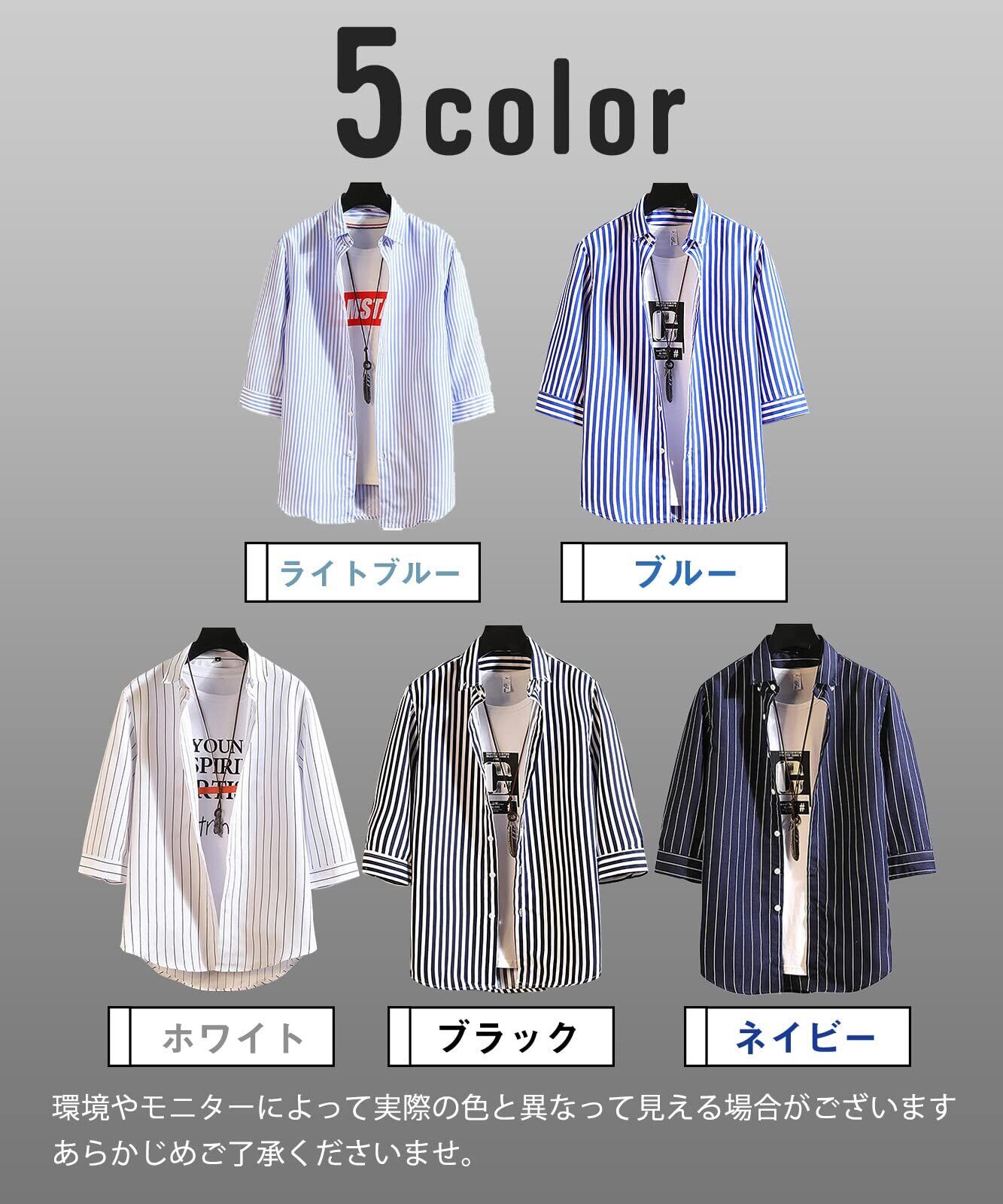 【2022最新】[エアバイ] 5色展開 七分袖 ストライプ 半袖 シャツ メンズ S〜2XL