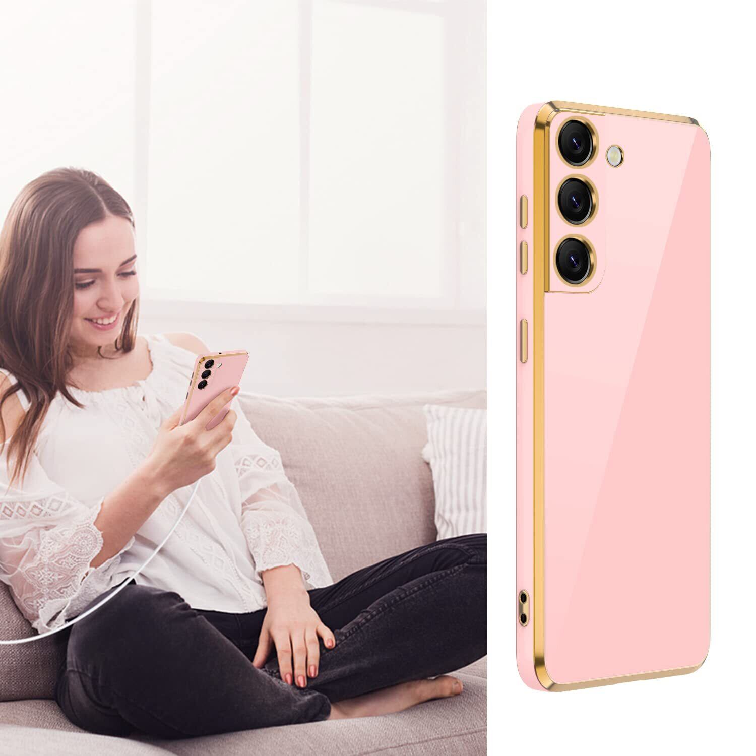 Galaxy S22 5G 用ケース クリア 耐衝撃 TPU ケース レンズ保護 ソフトケース 透明 メッキ加工 ワイヤレス充電 ギャラクシーS22 用カバー ラップホール付き 薄型 軽量 メッキ枠 ピンク/ゴールド JP2-14