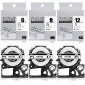 【特価商品】6mm 9mm 12mm 白地黒文字互換 テプラ テープ 白 キングジム テプラpro テープカートリッジ SS6K SS9K SS12K,キングジム ラベルライター テープ SR250 SR150 SR170 SR-GL2 SR-GL1など用, 3個セット | ニコニコSHOP