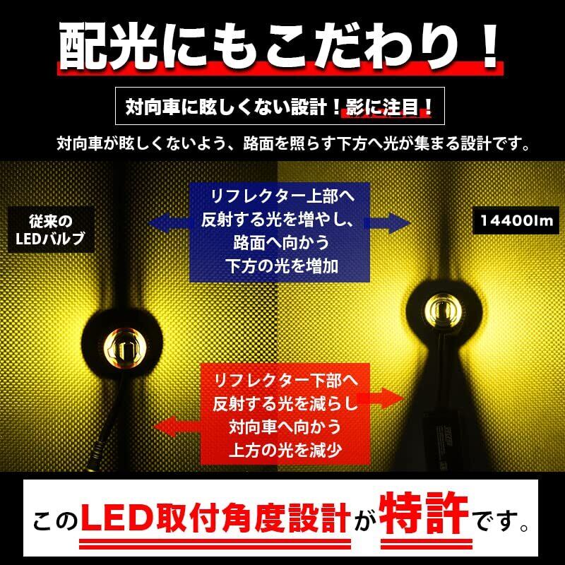 ■POINT:業界最高峰の明るさ:実測値イエロー14400lm/ホワイト13400lmで、夜間や悪天候時の視認性を劇的に向上 特許取得の独自技術:LEDチップの取付角度を最適化し、優れた配光と爆光を実現 進化した配光設計:カットラインより下の路面照射を強化し、上部の光を抑制して対向車に配慮 2色展開:イエロー(3100K)とホワイト(6300K)から選択可能 多目的使用:フォグランプ、ロービーム、ハイビームとして使用可能 ハイブリッド車対応:電圧変動の大きい車両でも安定して動作 高い耐久性:優れた防水/防塵性能(IP67)で長期使用に対応 簡単取り付け:純正バルブと交換するだけで装着可能 防塵性能: IP67最高レベルの防塵性能「6」を持っており、完全な防塵性能を有しています。 防水性能: IP67は1mの水深で30分間の耐水性があり、これはフォグランプの使用環境として十分な性能です。通常の雨や水しぶきに対して十分な保護を提供します。 使用環境: フォグランプは車の外部に取り付けられますが、常時水没するような環境にはありません。IP67の防水性能は、通常の道路環境や悪天候下での使用に十分対応できます。 メンテナンス性: IP67は一時的な水没に耐えられる設計ですが、完全密閉ではないため、必要に応じてメンテナンスが可能です。