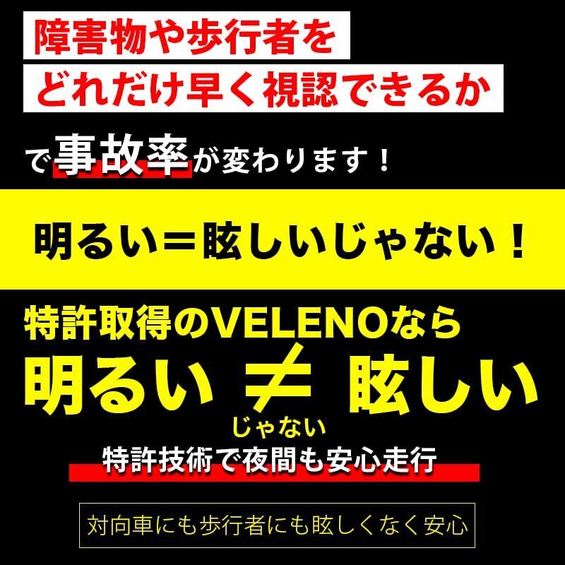 ■爆光なのに眩しくない!VELENOだけの特許技術 一度体験したら戻れない配光と爆光 実測値14400ルーメンという驚異的な光量は、純正LEDバルブと比較して約14倍以上の明るさを実現します。これは「史上最光峰の明るさ」と呼ばれるほどの輝度で、夜間や悪天候時の視認性を劇的に向上させます。 ※当店ではよく使われているおおむねの値600lmではなく純正LEDヘッドライトを計測し実測値1000lmとして比較しております。 研究し調整に調整を重ねたオリジナルの配光は特許庁も認めた特許技術! 対向車にも配慮でムラのない配光で運転手の視覚を守り、対向車の運転手の視覚も守ります。 3100Kのイエローは悪天候時の視覚に強く、6300Kの色温度は、純白で鮮明な光を放射し、後方の視界をクリアに保ちます。色温度は車検基準にも対応しているため、安心して使用できます。 特許技術の配光設計により、眩しさを抑えつつ効果的に路面を照らします。これにより、他の道路利用者への迷惑を最小限に抑えながら、自車の安全性を高めることができます。 また、配光と明るさの特許だけでなく実用新案取得済みの技術で配線もコンパクトに取り回ししやすく、意匠登録済みの技術で360度固定ができるソケットで多くの車種の取り付けが可能になっています。