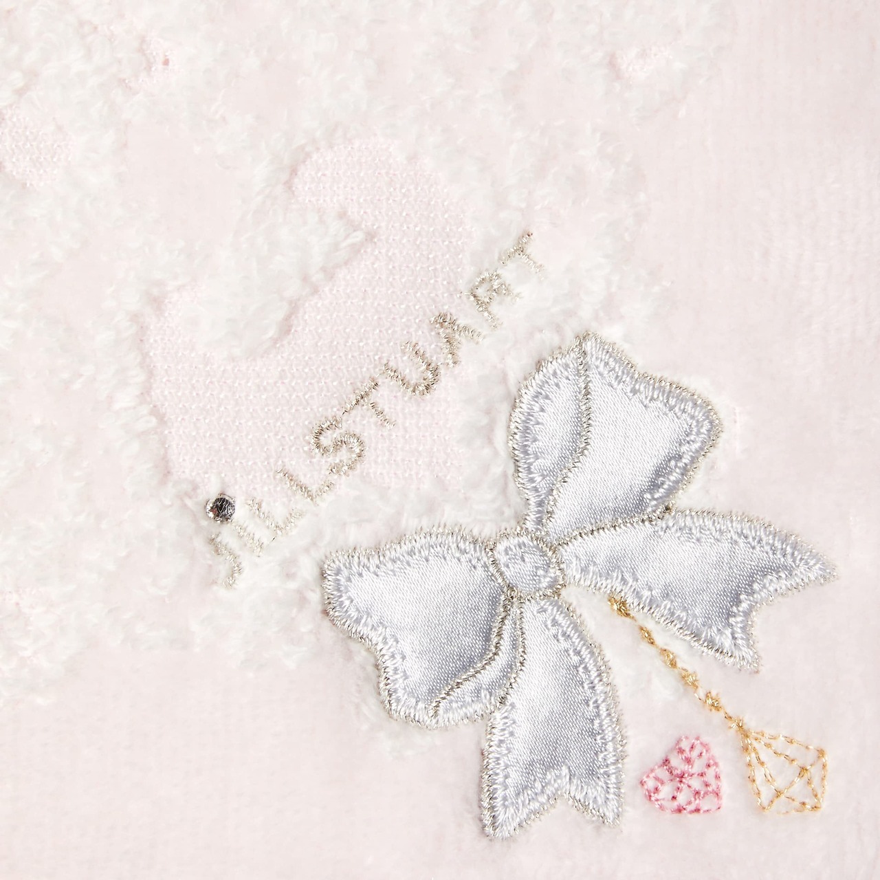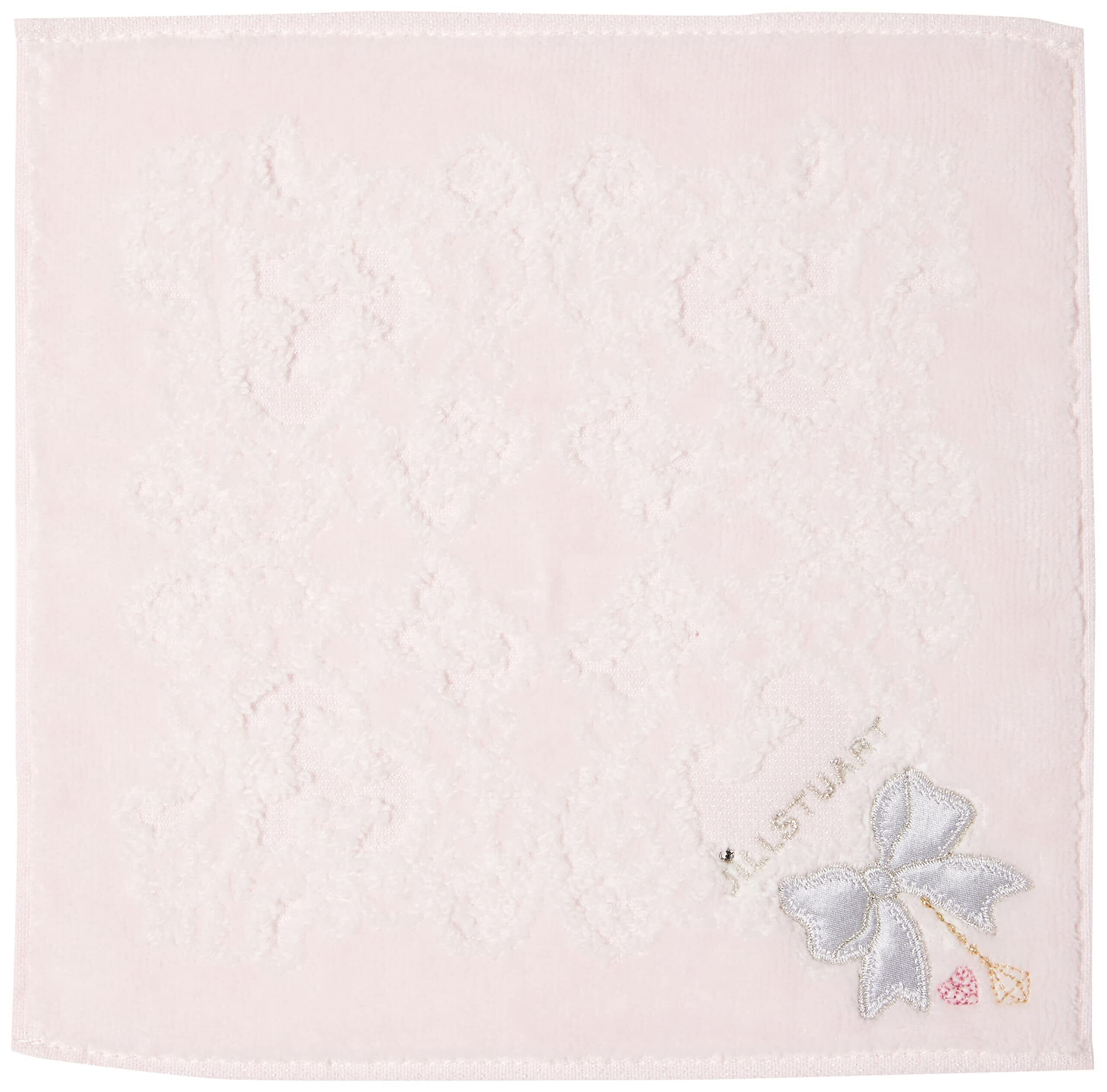 リボンのアップリケ刺繍がキュートなタオルハンカチ。