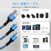 【頑丈な構造】2本セット 充電コード 2in1は優質ナイロン編み、一般的なケーブルより10倍以上の耐久性をもち、10000回以上の厳しい折り曲げテストもクリアしました。断線防止のため、アルミ合金製接続口を採用し、高耐久性で抜挿寿命性向上、安心して充電することができます。