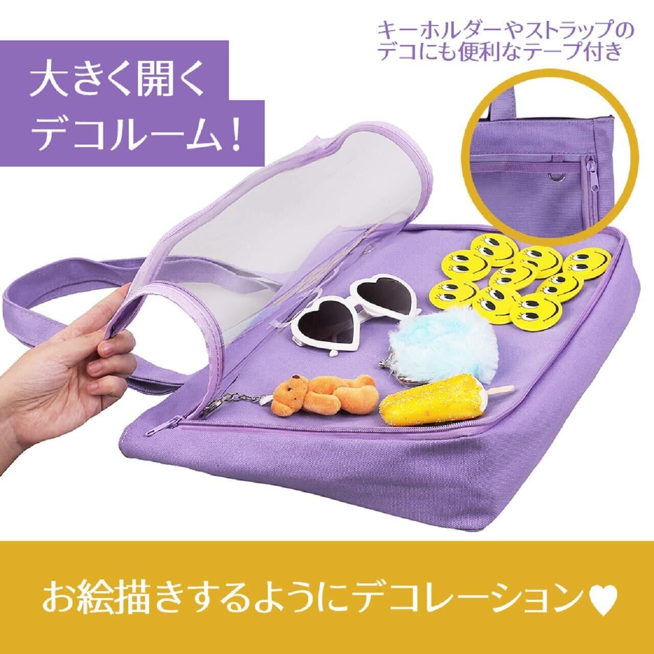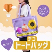 バッグの前面の透明ポケットで見せたいアイテムで自分の好みにアレンジできるトートバッグです