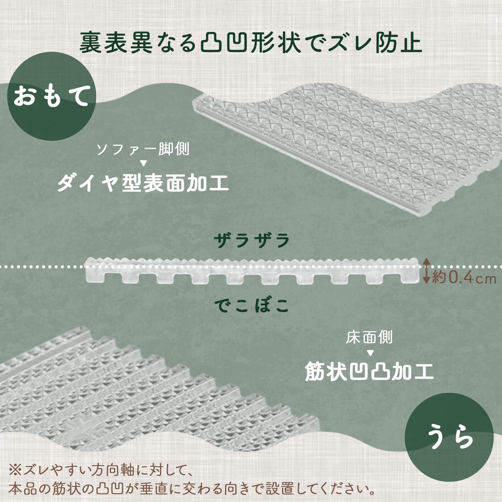 両面の凸凹形状でズレを防ぎ、水洗い可能で衛生的に使用できます。