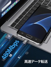 【高速充電とデータ転送】2.4A充電ケーブルは、標準タイプのケーブルより高速に充電し、USB 2.0経由で480Mbitsまでデータ転送可能。