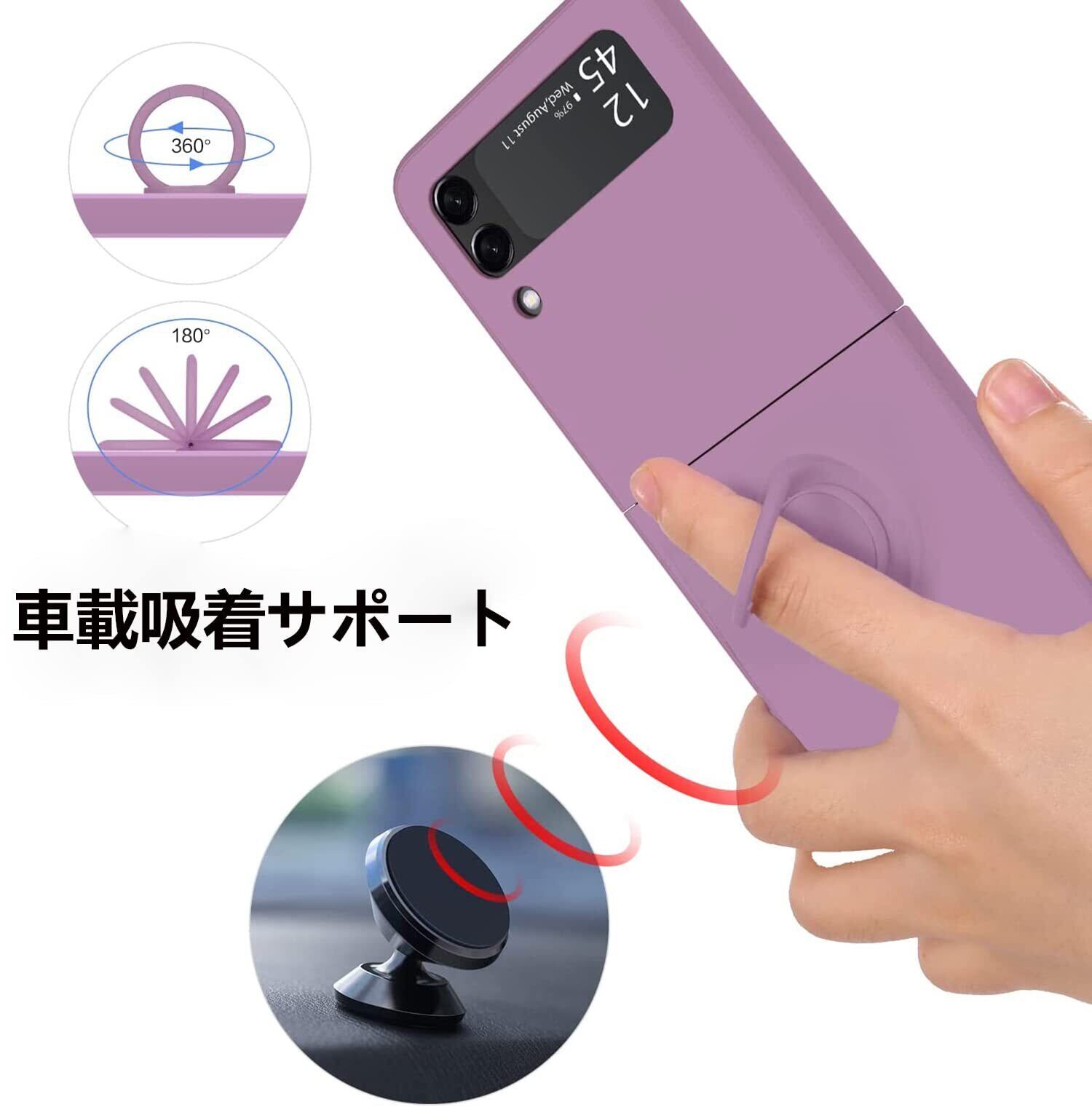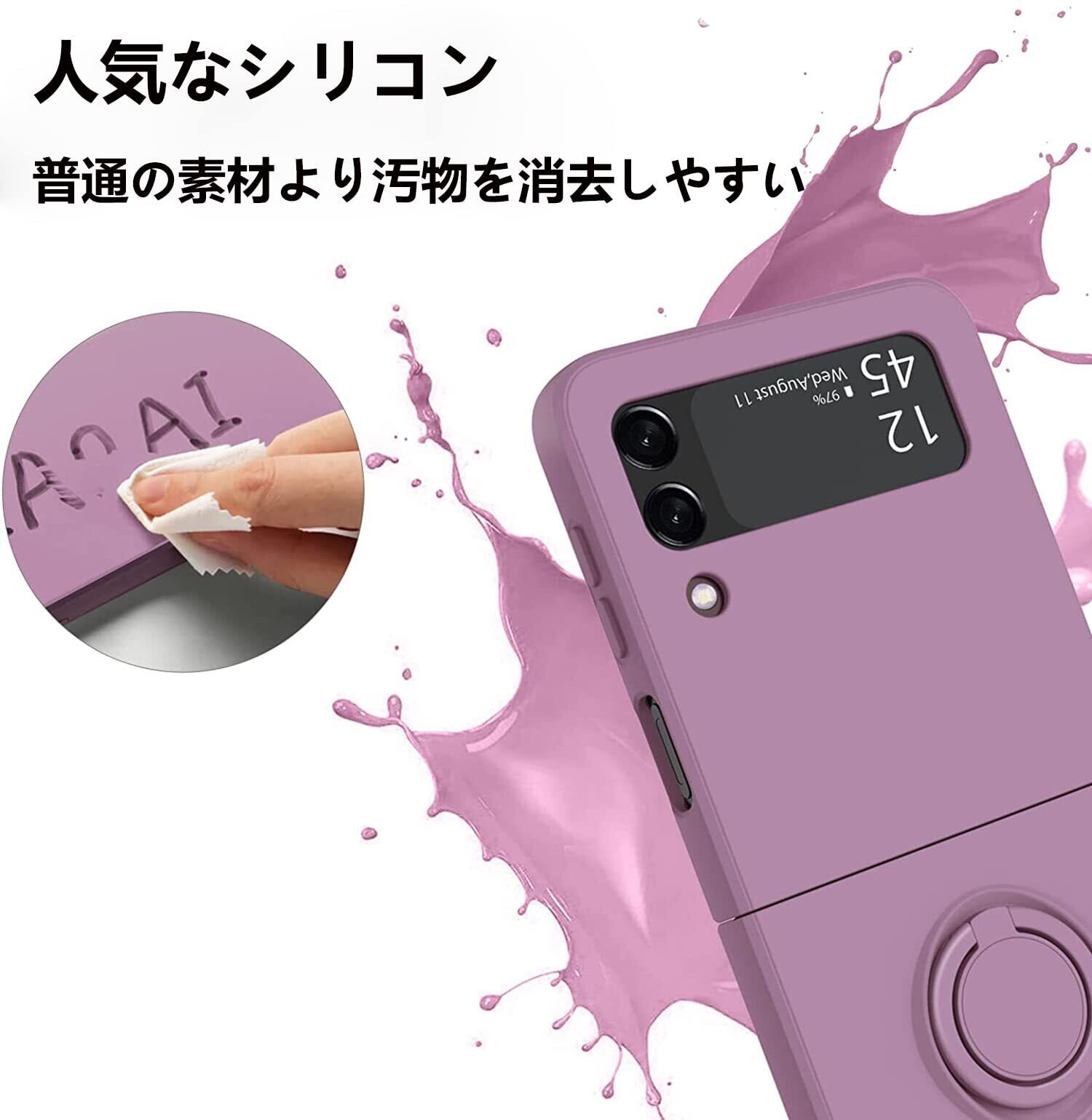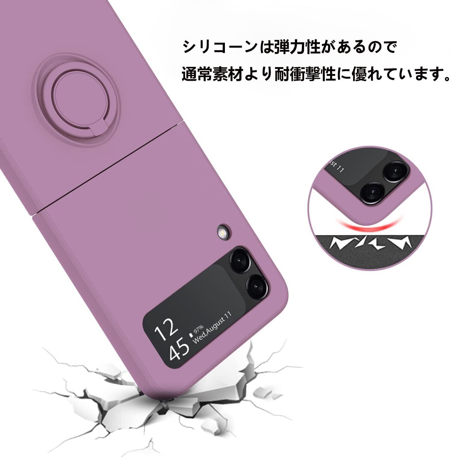 【最新】Galaxy Z Flip4 ケース シリコン galaxy Z Flip4 5G ケース リング スタンド機能 軽量 薄型 Galaxy Z Flip4 ケース 純正 (紫)
