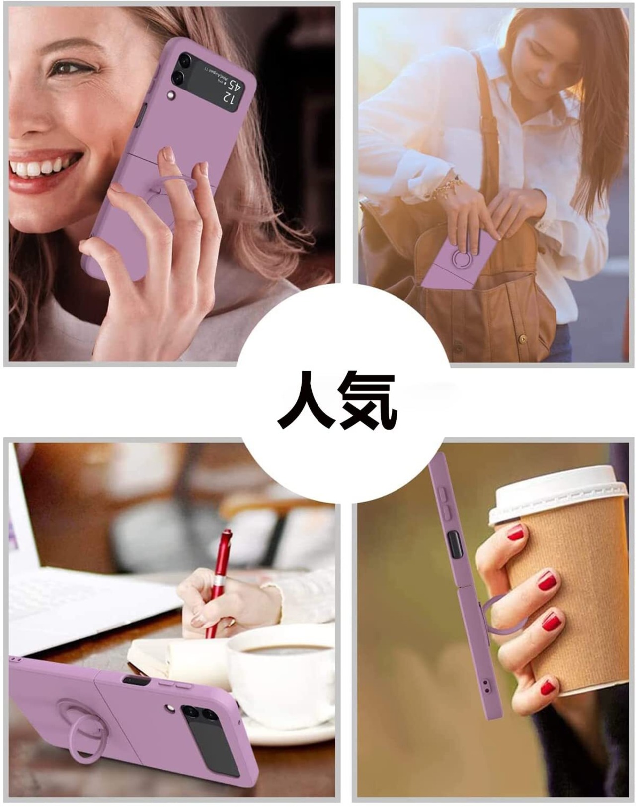 【特価セール】【最新】Galaxy Z Flip4 ケース シリコン galaxy Z Flip4 5G ケース リング スタンド機能 軽量 薄型 Galaxy Z Flip4 ケース 純正 (紫)