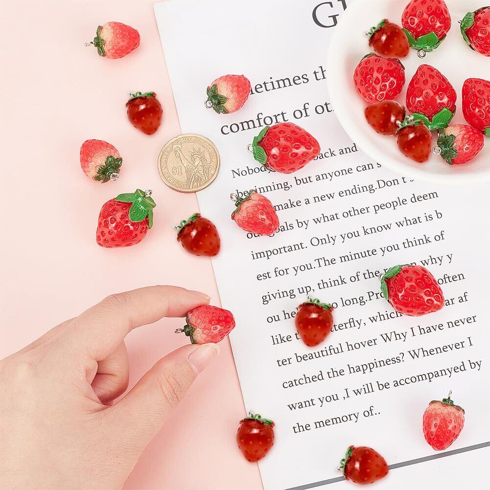 素材: ストロベリーチャームチャームは樹脂製です。 表面は滑らかで色あせにくい, 軽量, あなたはそれらを長期間適用することができます