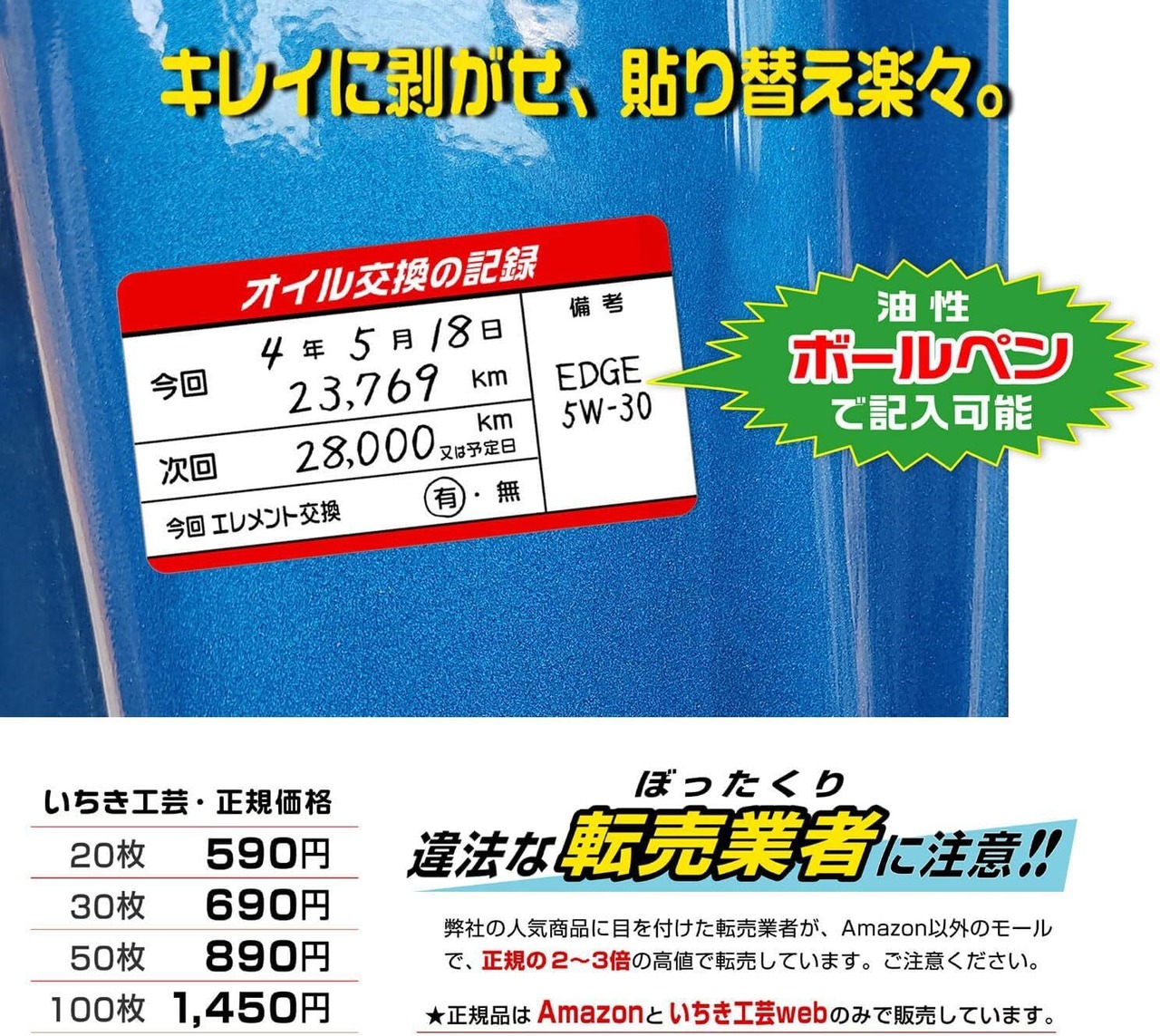 デザイン屋が作った、スタイリッシュなオイル交換ステッカー。