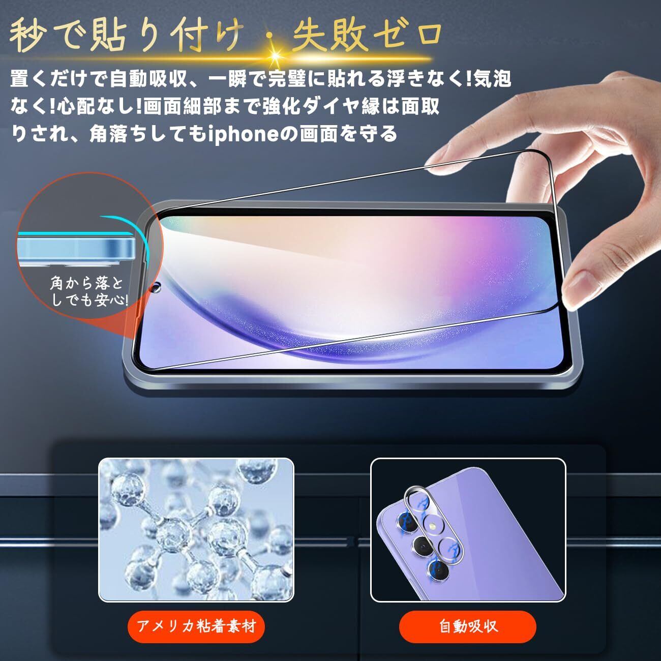 対応 Galaxy A54 5G SC-53D SCG21 フィルム ガイド枠付き 【2* 強化ガラス + 2* レンズ保護フィルム+ 1* ガイド枠 + 1*取り除き発泡板】GalaxyA54 ガラスフィルム 指紋ロック解除対応 ウィッシュ 高光沢 さらさら Galaxy SC-53D 保護フィルム 液晶 GalaxySCG21 ケース カバー 日本旭硝子素材採用 3D Touch対応 指紋認証鋭敏 9H硬度 厚さ0.26mm超薄型 高透過率 気泡なし ラウンドエッジ加工 簡単貼り付け