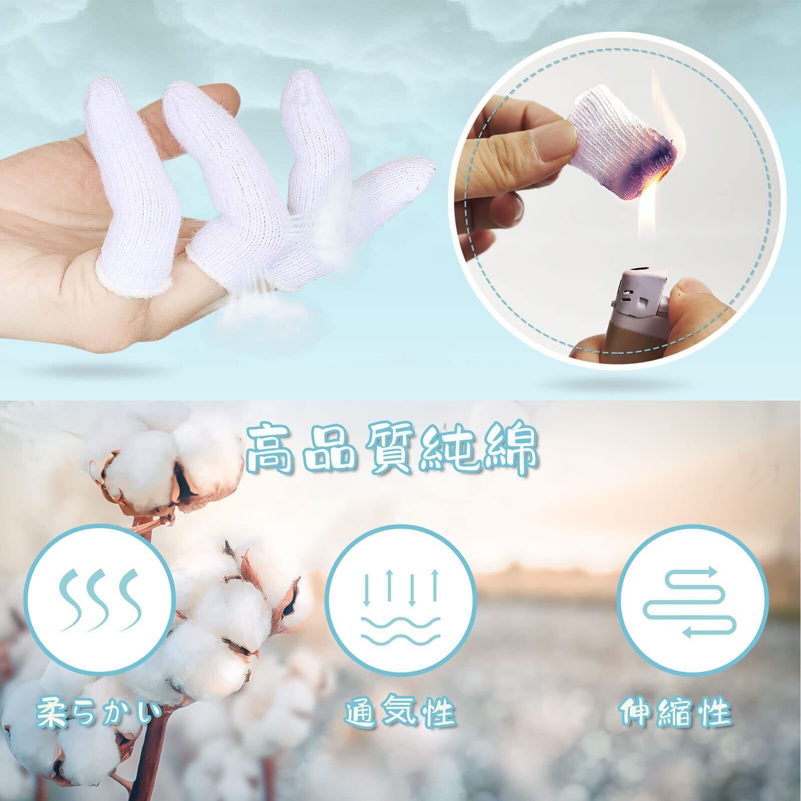【在庫処分】夢の物 指サック 20個入り お肌に優しい純綿100% 指先ケア あがきれ ひび割れ 手湿疹 極薄 素肌感覚 指カバー 伸縮性 通気性 薄手 使い捨て 指先保護 手汗防止 フリーサイズ2cm*6.5cm | ニコニコSHOP