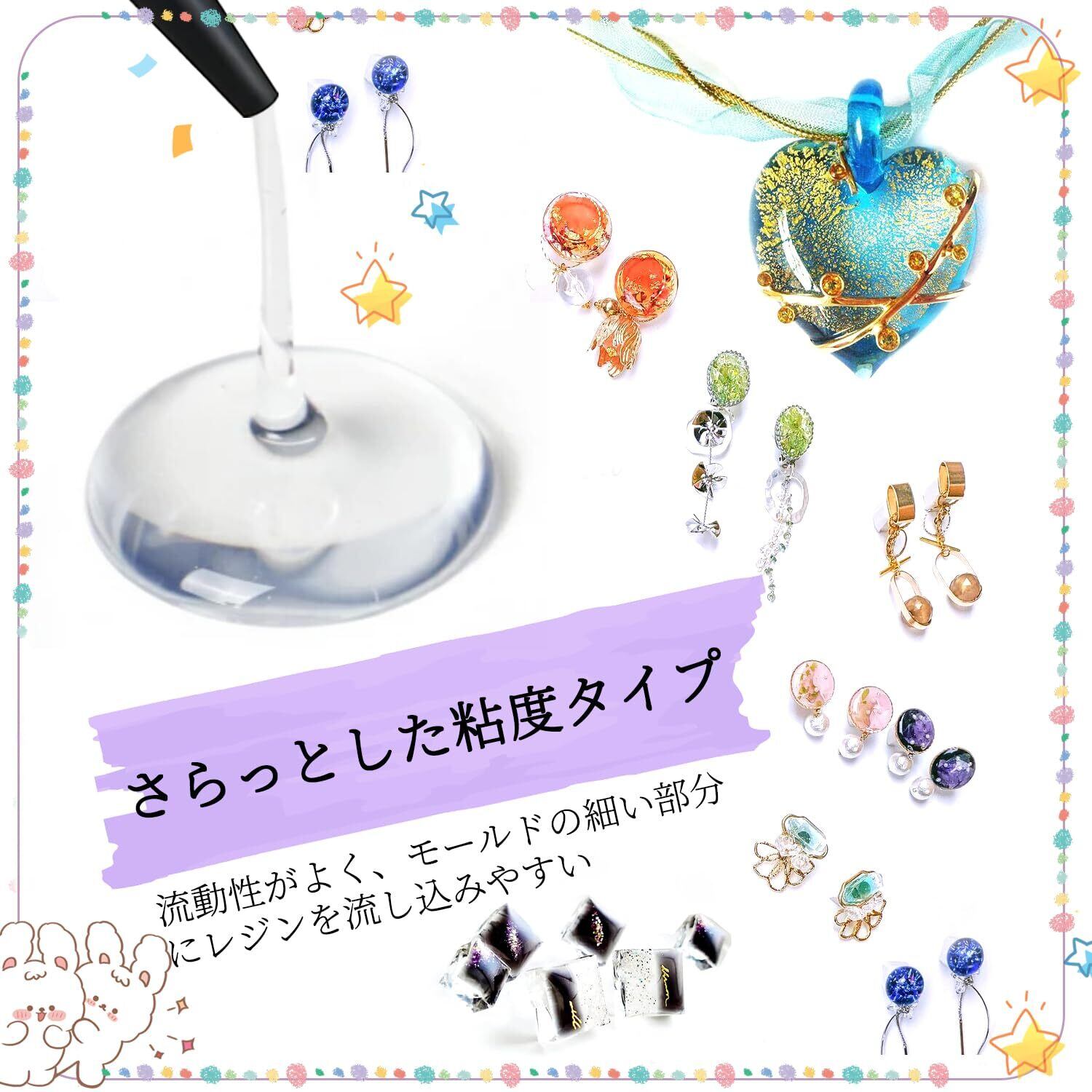 【幅広い用途】300gの大容量コスパがよいUVレジンクラフトに興味を持つ家族や友達へのプレゼントとして最適ですピアス、ヘアゴム、ネックレス、キーホルダー、スマホケースなどに使用できますこのように、アクセサリー以外にもオリジナルの文房具や小物もレジンで簡単に作れます