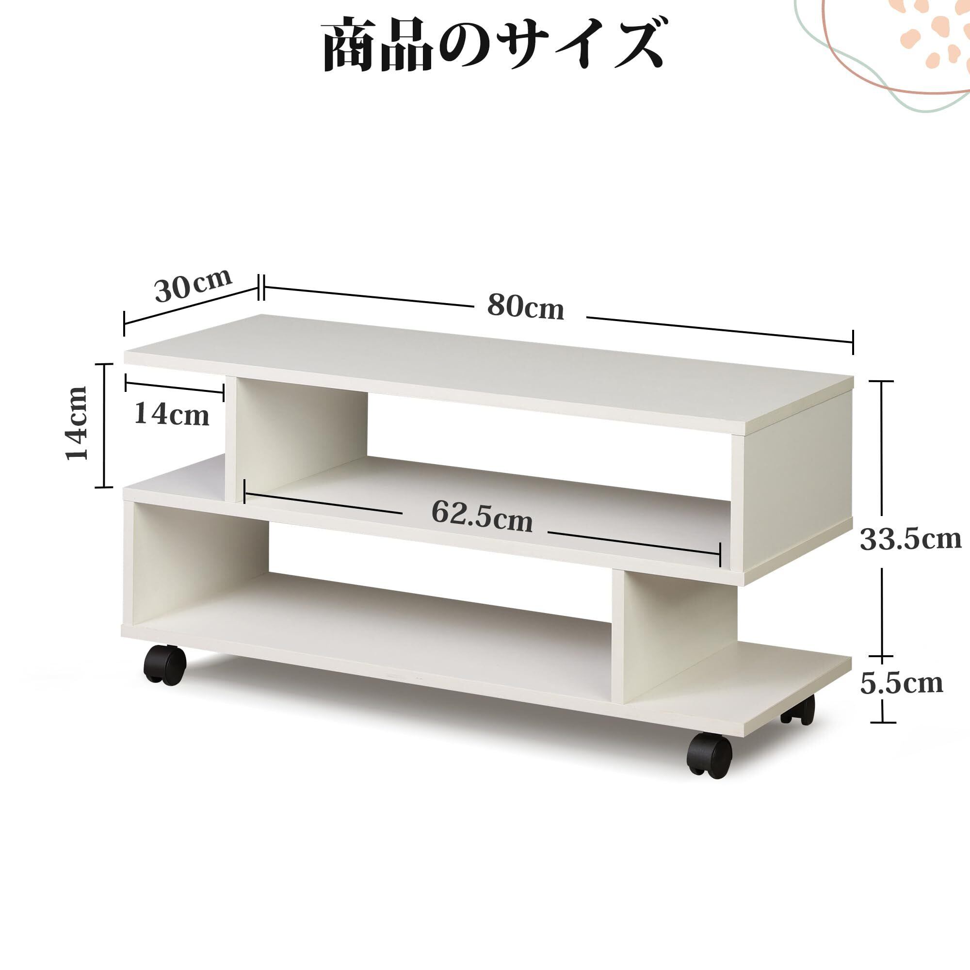 WLIVE テレビ台 テレビボード ローボード キャスター付き 幅80×奥行30×高さ39cm 24-37V対応 キャスター外しても利用可能 ロータイプ AV機器対応 コンパクト 組立簡単 ホワイト