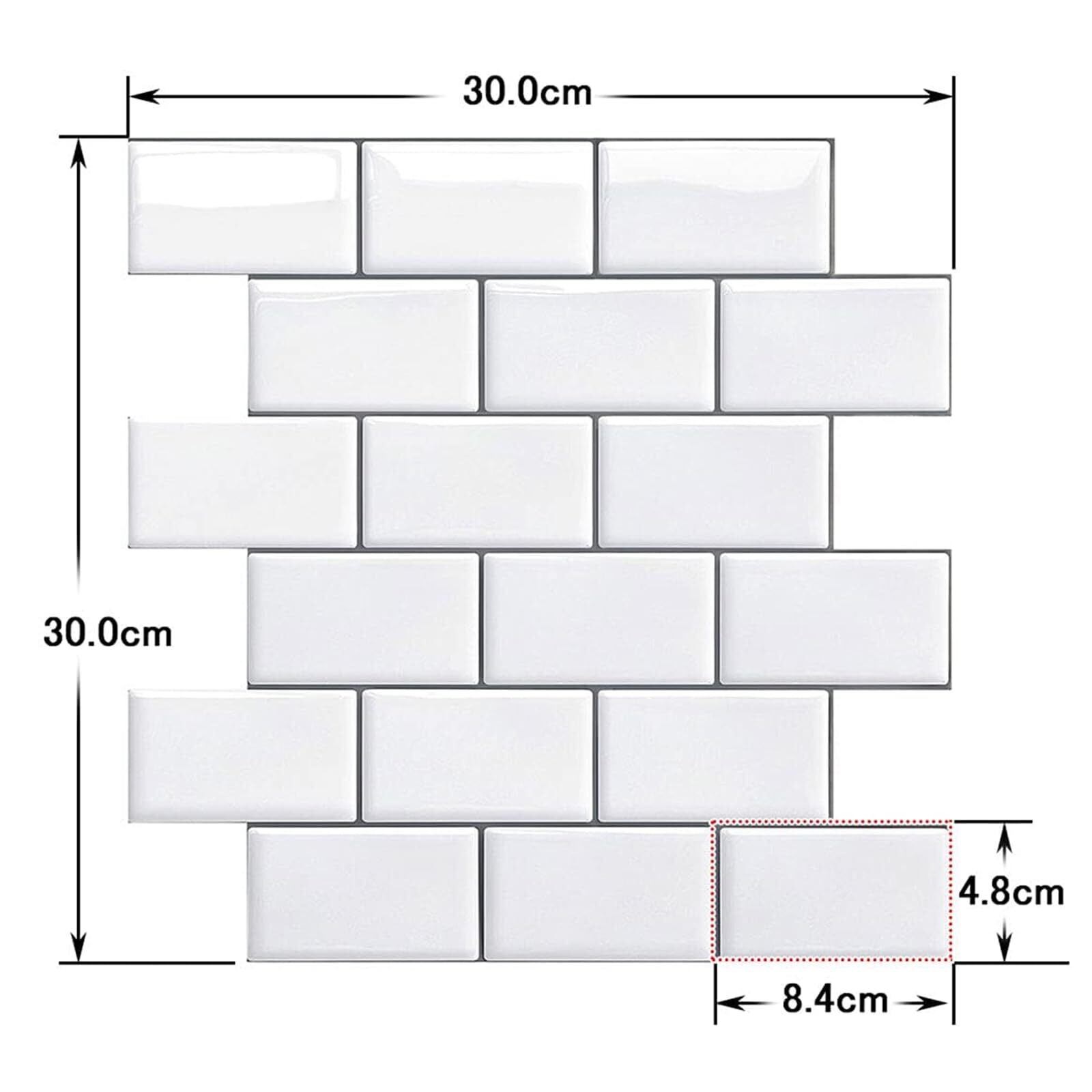 APSOONSELL タイルシール 防水 キッチン 耐熱 3D 立体 壁紙シール 30.5*30.5cm 【4枚セット】 タイルシート 防水 洗面所 模様替え 防油 防汚 剥がせる レンガ 凹凸 賃貸OK 北欧 白