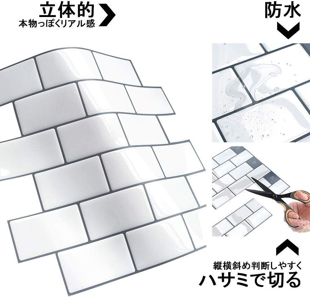 張り付け簡単:あっという間にすっきり清潔感ある壁面に変身!接着材や目地材は不要です、台紙から剥がしてそのままタイルシール防水を貼り付け出来ます。芸術豊かなタイルの雰囲気を再現し、室内全体をきれいに明るくします。
