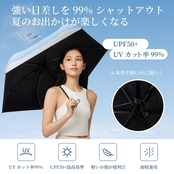 【UVカット*完全遮光】傘布の裏側はナノ抗紫外線ノリコーティングと断熱ノリコーティングを採用して、可視光と紫外線を遮断して、効果的に日焼け止めすることができます。紫外線カット100%効果、UPF50+ 光透過率0、日差しの中で涼しく保ち、そしてあなたの肌を効果的に保護します。真夏の強い日差しを遮り、大切なお肌を太陽光線、紫外線からガードでき、日焼け対策アイテムとして猛暑を乗り切ります、。日焼けを防ぐために必要なUVカットの性能を兼ね揃えた、紫外線対策にはピッタリのアイテムとなっています。