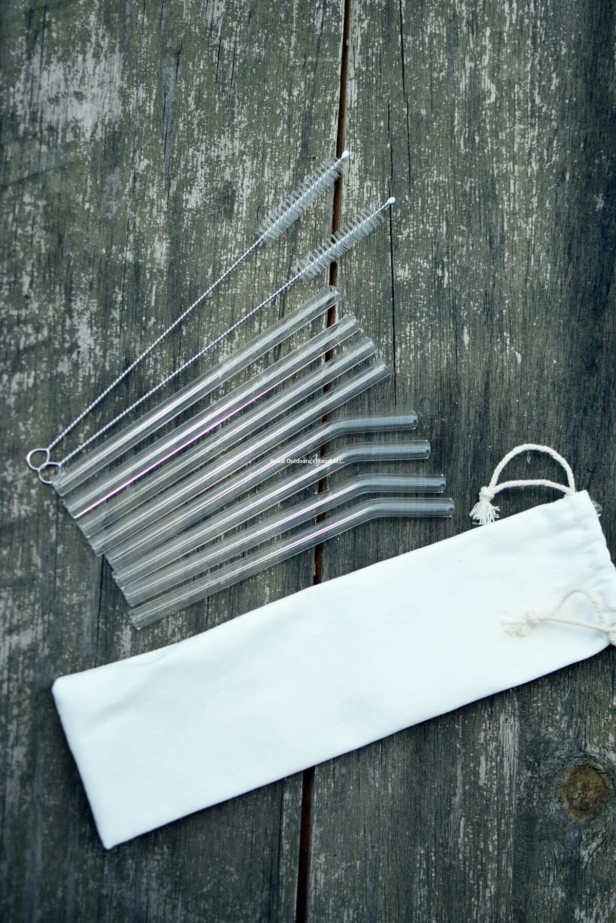 【数量限定】Roost Outdoors 【食品衛生法検査済】 ガラスストロー 8本セット ベントストロー 4本 ストレートストロー 4本 洗浄ブラシ 2本 (ショート(透明):15cm) | ニコニコSHOP