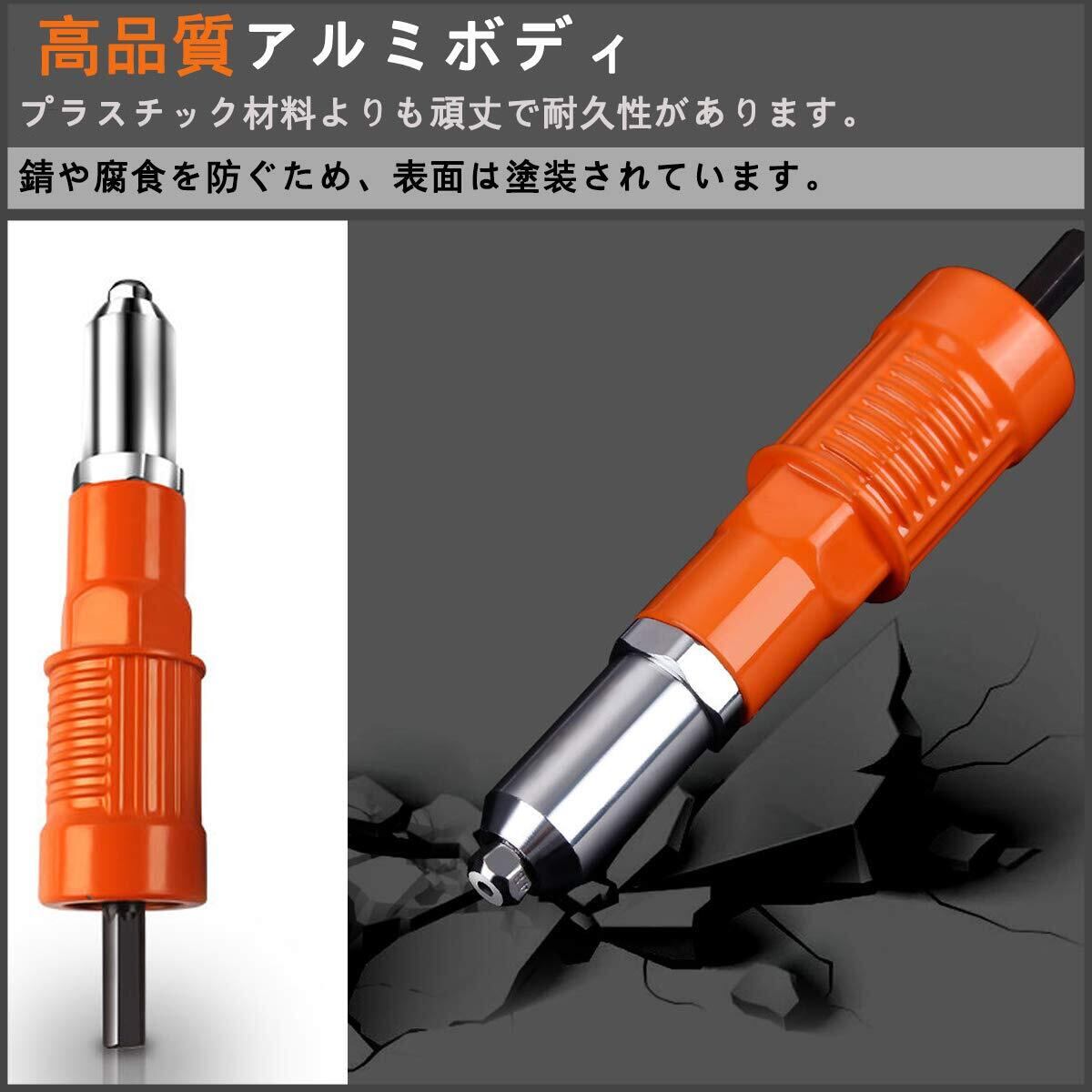 【DIYの強い味方】インパクトドライバーに取り付けるだけで電動でリベット打ちができるコードレスリベットガ ンになります。電動なので作業に力も要らず、工場作業、家庭DIY、木工に最適です。