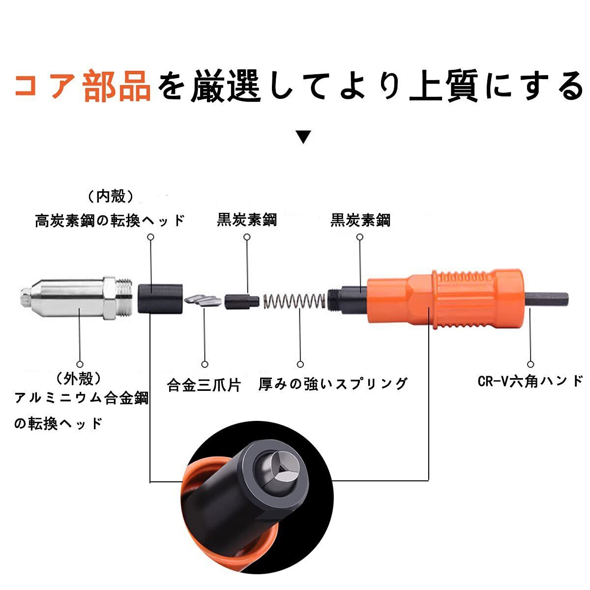【新着商品】KIMLONTON 3本セットリベッターアダプター リベットガン 合金鋼リベッター工具 インパクトドライバー用リベットアダプター 電気ドリル用リベッターアダプター2.4mm 3.2mm 4.0mm 4.8mm | ニコニコSHOP