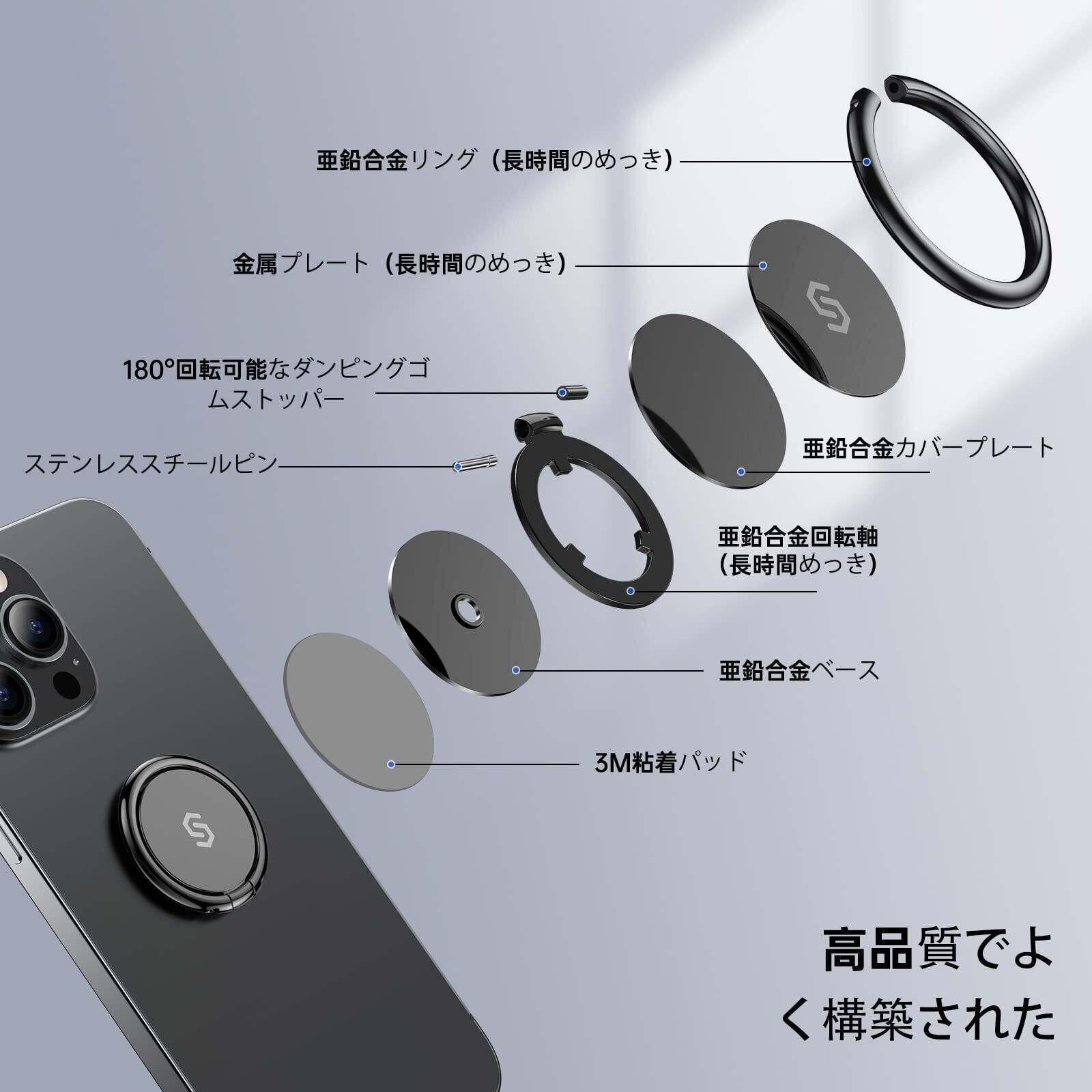 【2個入り】Syncwire スマホリング 携帯リング 薄型 360°回転 落下防止 指輪型 スタンド機能 iPhone リング ホールドリング フィンガーリング iPhone 14/14 Plus/14 Pro/14 Pro Max/13mini / 13 /13 Pro / 13 Pro Max/iPhone 12シリーズなどのiPhone/Android各種他対応