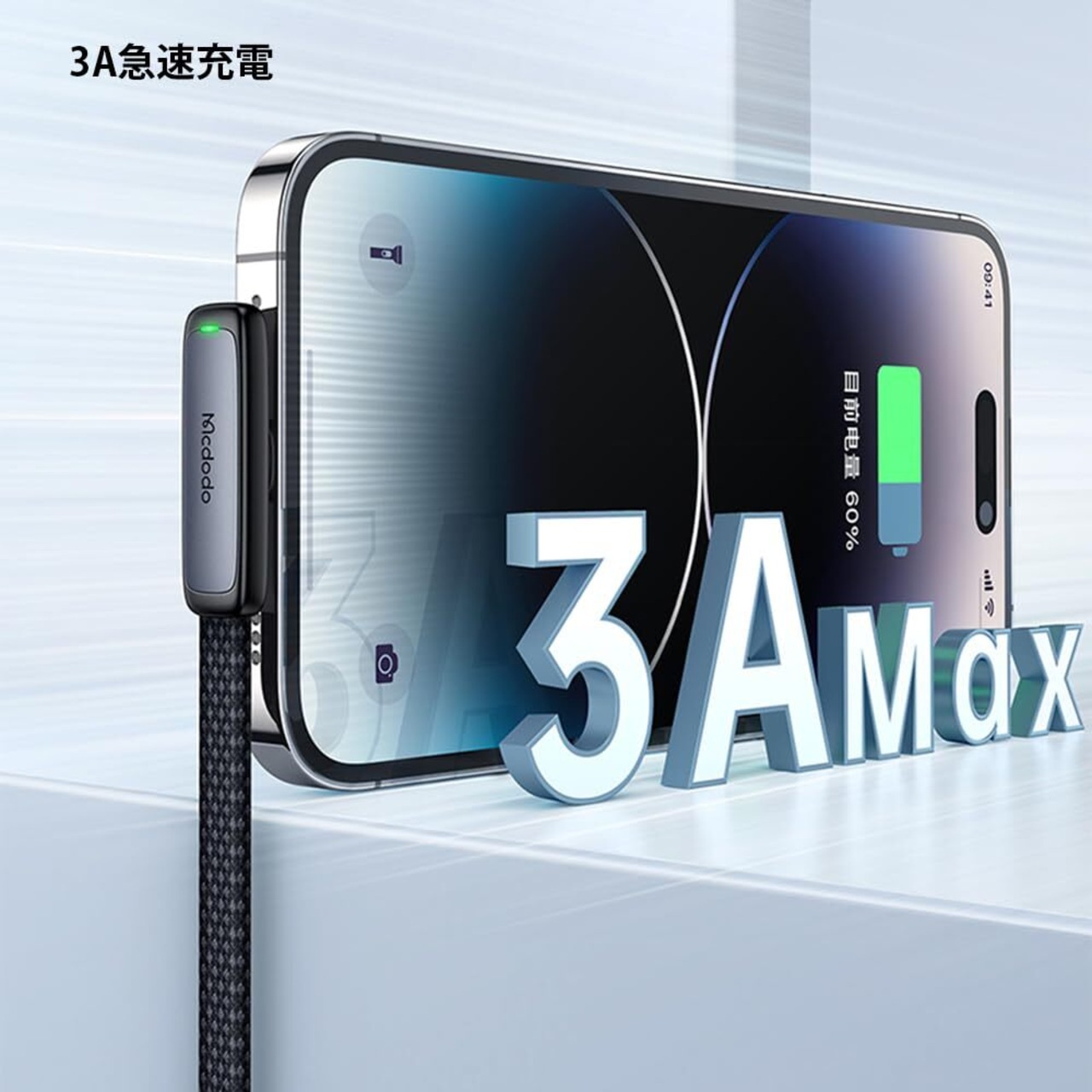 3A急速充電対応:このケーブルは3Aの出力に対応しており、デバイスを効率的に急速充電できます。忙しい日常の中でも、安心してご利用いただける頼もしい存在です。