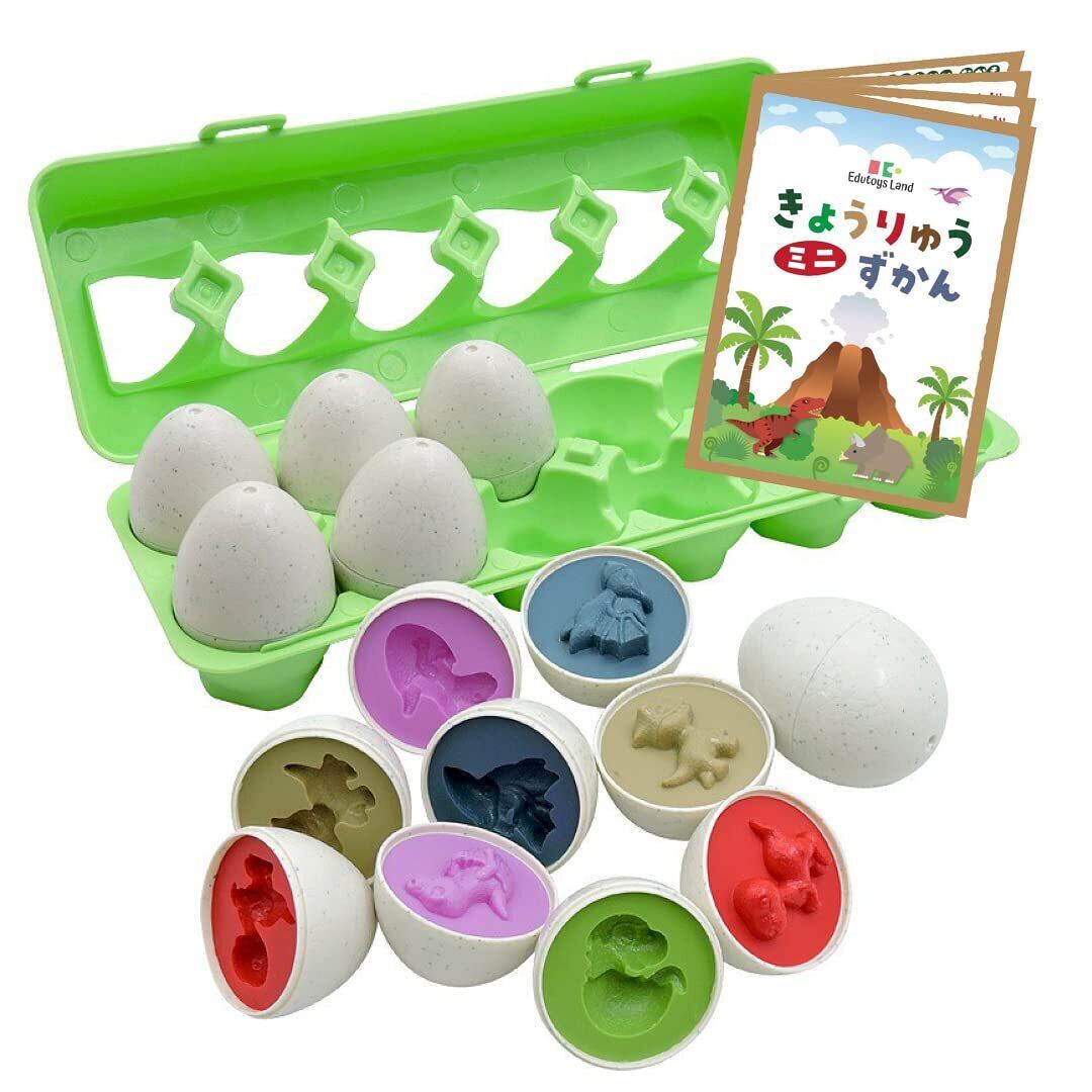 マッチングエッグ 知育ガイドorミニ図鑑付き モンテッソーリ 知育玩具 卵 おもちゃ パズル 形合わせ 赤ちゃん 6か月 1歳 1歳半2歳 3歳 (恐竜)