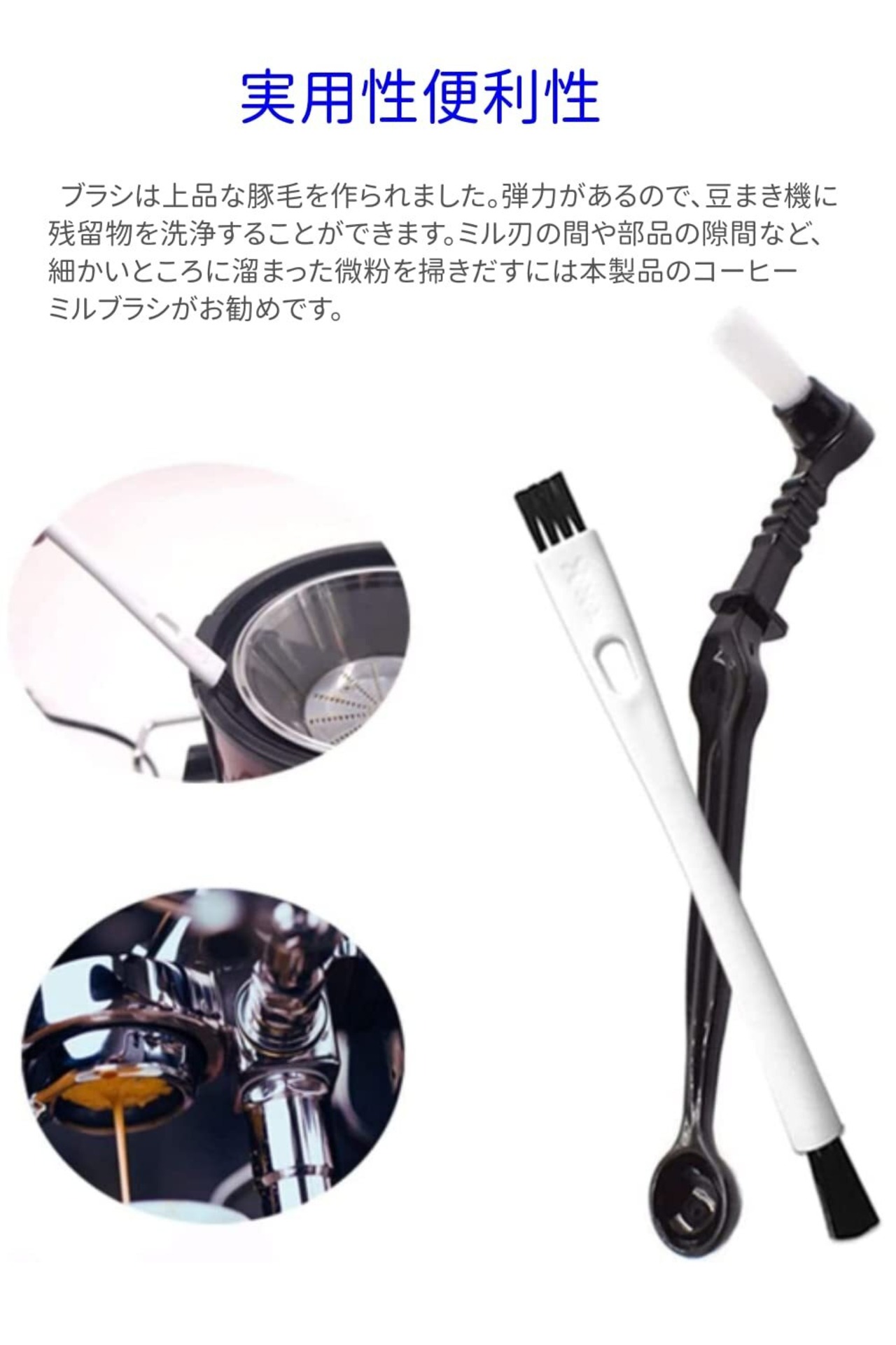 【実用性便利性】ブラシは上品な豚毛を作られました。弾力があるので、豆まき機に残留物を洗浄することができます。ミル刃の間や部品の隙間など、細かいところに溜まった微粉を掃きだすには本製品のコーヒーミルブラシがお勧めです。