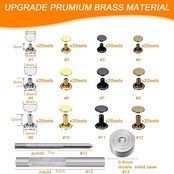 【DIY・手芸・ハンドメイドに適用】かばんやアクセサリー、財布、キーケース、サンダル等様々なホックの取付作業に必須の定番セットになります。カシメ金具は大活躍な手芸材料セット、素敵なハンドメイド作品の仕上げに大いに役立ち間違いありません。DIY好きな方にお勧めです。