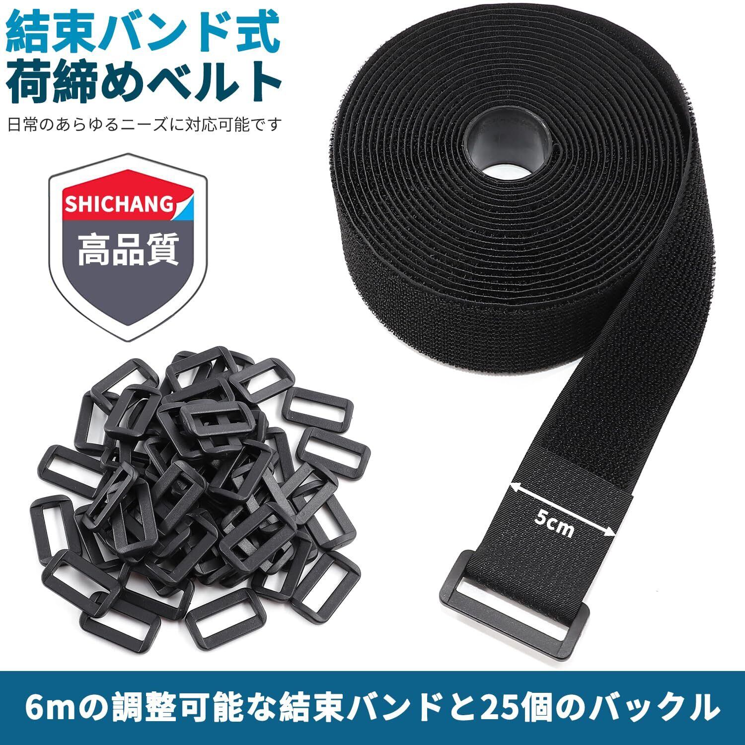 【新春セール】マジック結束バンド 6m 幅5cm+バックル 30個付き、結束テープ 荷締めベルト 固定ベルト 結束マジック 面ファスナー テープ 強力 耐熱 配線整理 自由にカット 繰り返し 荷物梱包 収納用テープ(黒色) | ニコニコSHOP