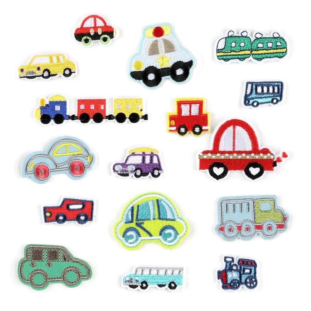 ワッペン 16枚セット 車 乗り物 アイロン接着 刺繍ワッペン アップリケ パッチ 補修 可愛い 子供 男の子 幼稚園 保育園 DIY お祝い ギフト