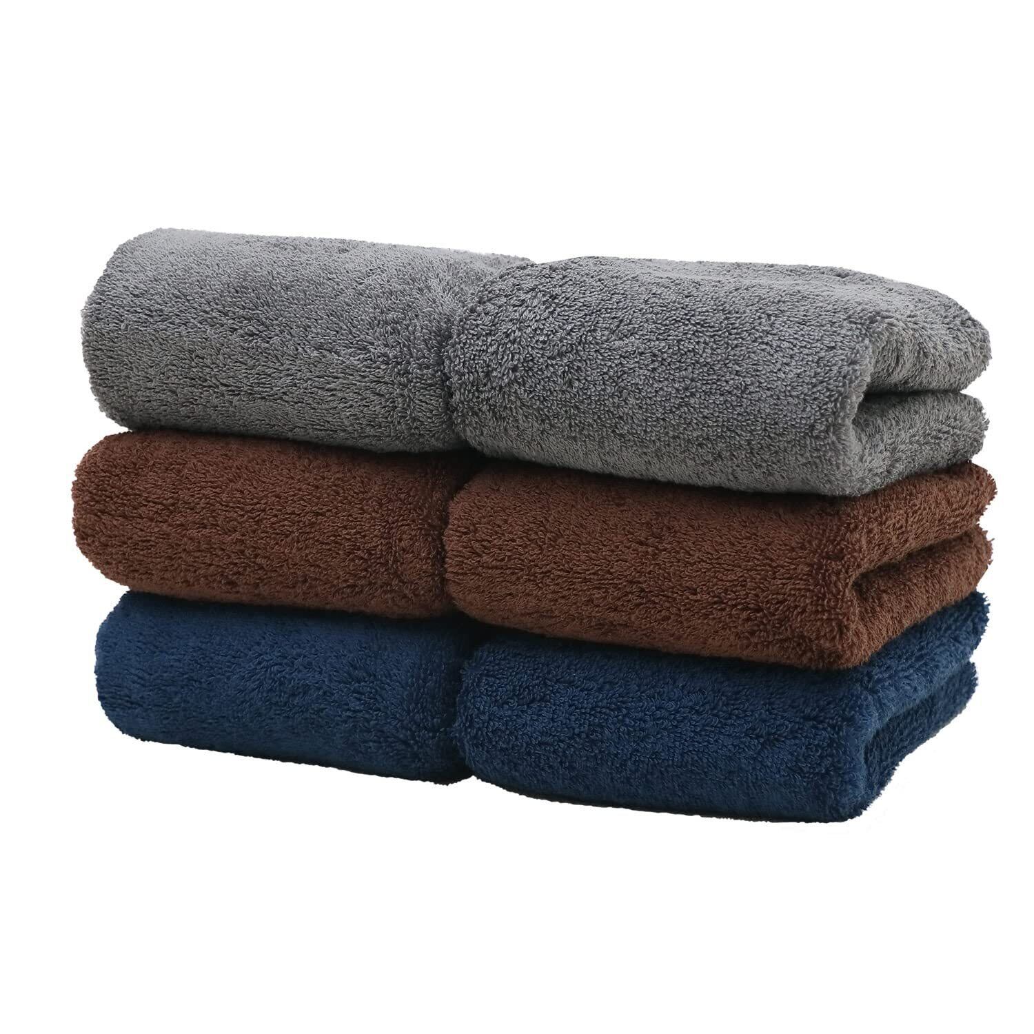 【人気商品】フリーリー タオル フェイスタオル 6枚セット 34×80cm 綿100% 厚手 無地 丸洗い 夏タオル 吸水 (ダックグレー2枚 、ブラウン2枚 、ネイビー2枚 ) | ニコニコSHOP
