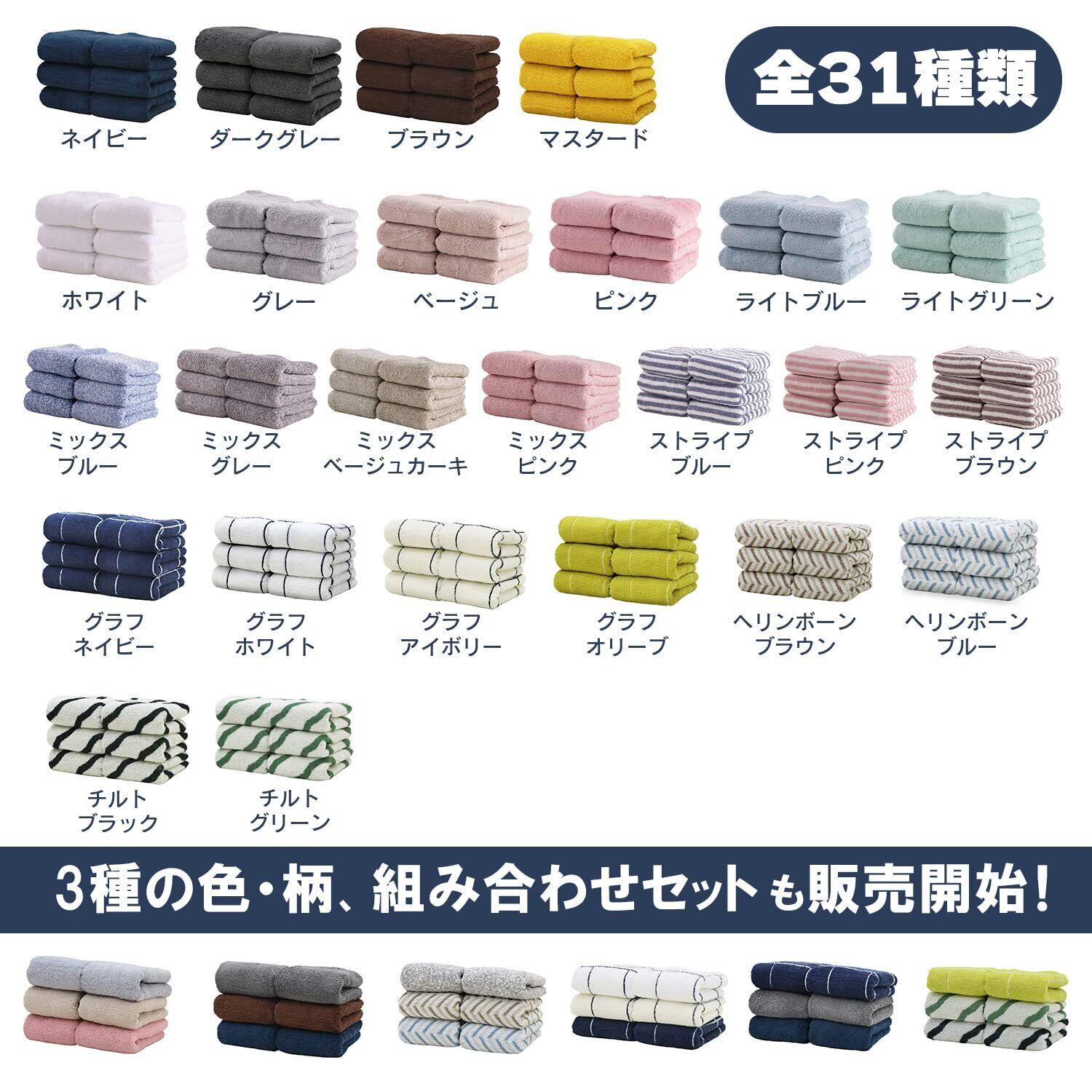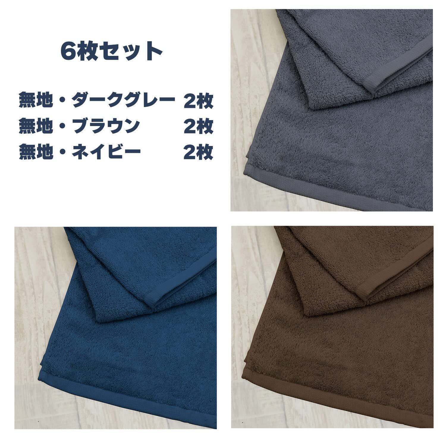 フリーリー タオル フェイスタオル 6枚セット 34×80cm 綿100% 厚手 無地 丸洗い 夏タオル 吸水 (ダックグレー2枚 、ブラウン2枚 、ネイビー2枚 )