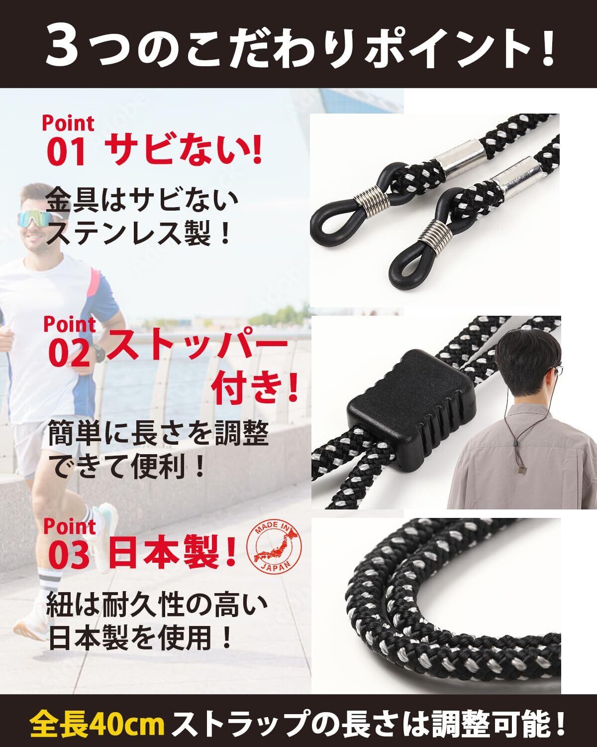 [DELLEPICO] グラスストラップ 偏光グラス メガネストラップ メガネバンド メガネホルダー 眼鏡ストラップ サングラス チェーン 置き忘れ防止 釣り アウトドア スポーツ用 おしゃれ 40cm