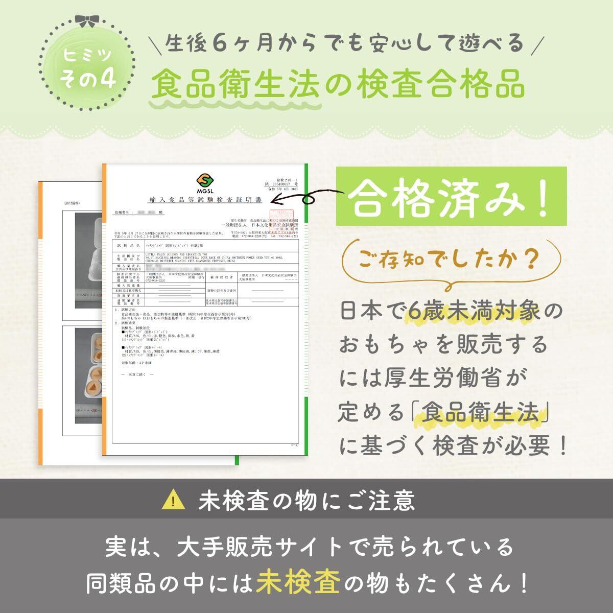安心の検査合格品: 6歳未満対象の玩具の販売に必要な食品衛生法に基づく検査合格品です。当店のマッチングエッグは生後6か月の赤ちゃんでも安心して遊んで頂けるよう検査合格品を販売しております。また、角がなく、お子さんの口に入らない大きさなので誤飲の心配もございません。