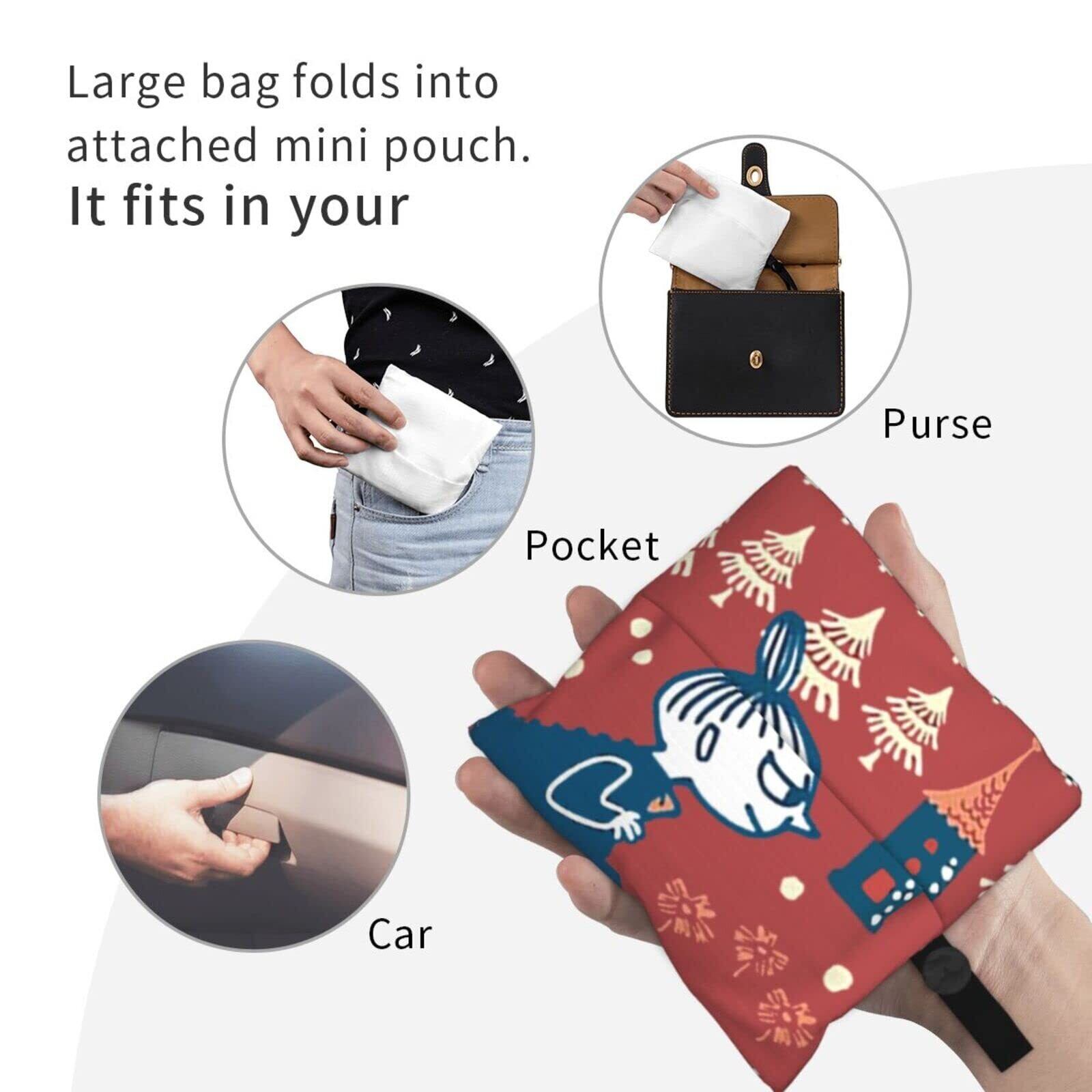 【特価セール】ムーミン リトルミィ エコバッグ 折りたたみ軽量トート・エコバッグ大容量防水手提げ 肩掛け買い物袋 多機能 レディースメンズコンパクトコンビニバッグ。縦約64cm×幅38cm×厚マチ11.5cm 1 Pcs | ニコニコSHOP