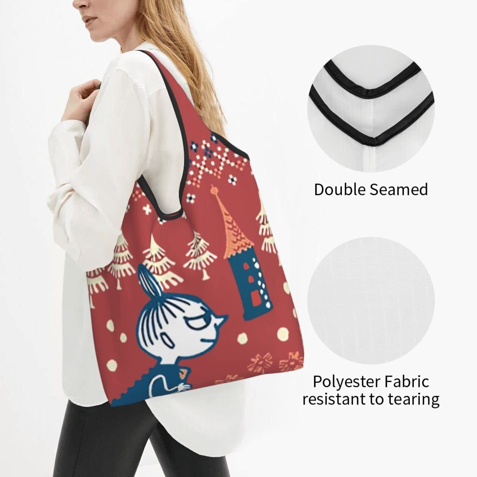 ムーミン リトルミィ エコバッグ 折りたたみ軽量トート・エコバッグ大容量防水手提げ 肩掛け買い物袋 多機能 レディースメンズコンパクトコンビニバッグ。縦約64cm×幅38cm×厚マチ11.5cm 1 Pcs