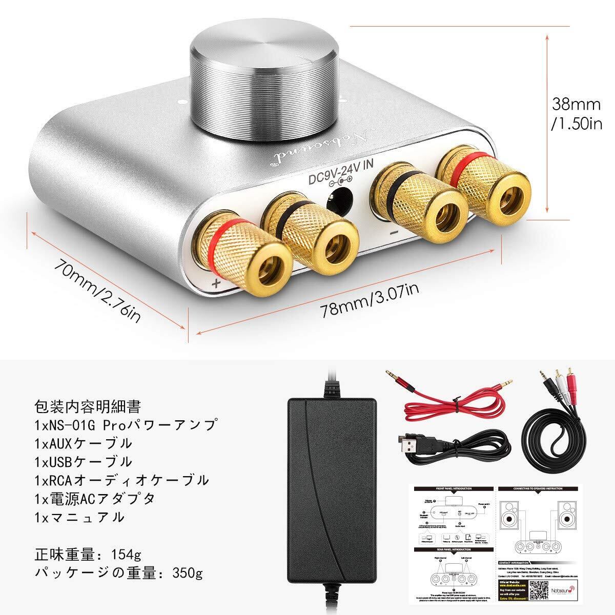 Nobsound NS-01G Pro パワーアンプ bluetooth 5.0 100W アンプ スピーカー HiFi オーディオ 電源付き (シルバー)