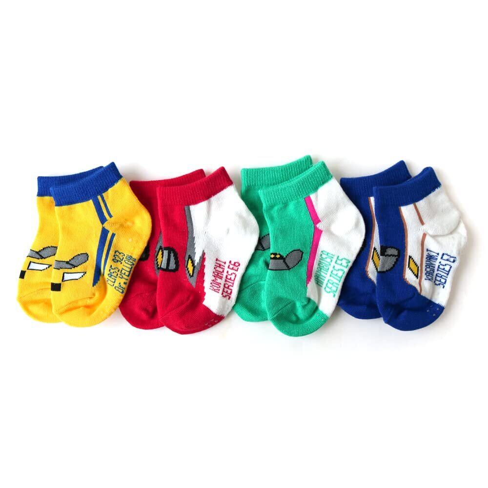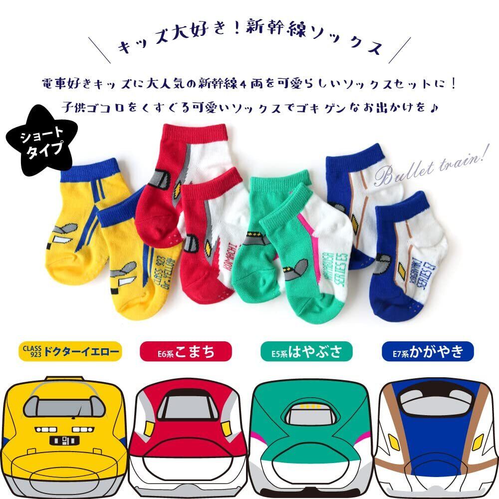 [box408] 子供 靴下 鉄道 新幹線 ソックス 抗菌消臭 クルー丈 4足セット こまち はやぶさ ドクターイエロー かがやき