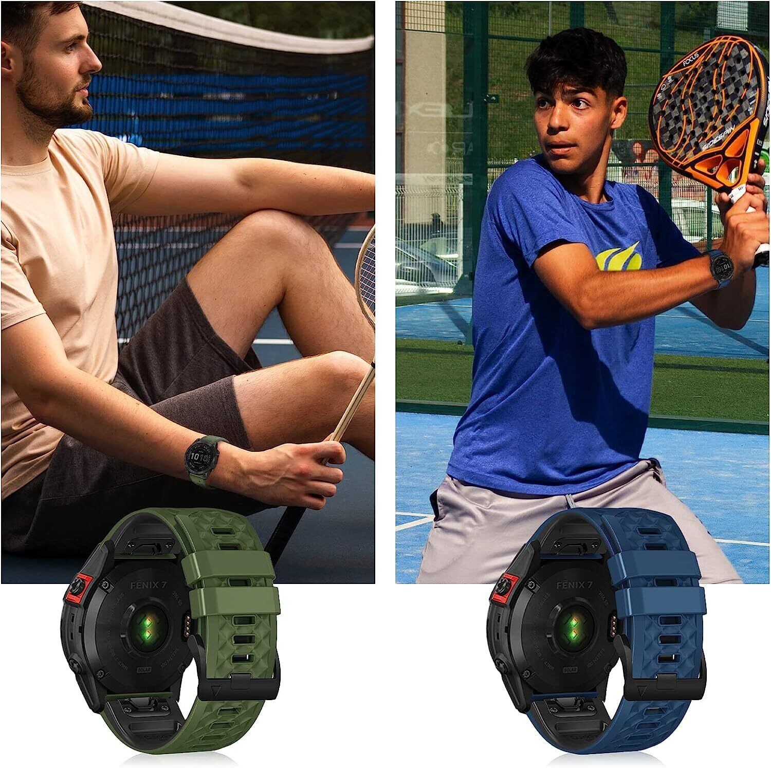 [LanQii] バンド22mm 用の QuickFit Garmin Fenix 8 47mm/Garmin Fenix E 47mm/Garmin Fenix 7 Pro Solar/Approach S70 47mm/Fenix 7 Pro/7/6/5/6 Pro対応 シリコンバンド [柔軟性・耐摩耗・耐久性] スポーツバンド 時計バンド ブラック & 赤