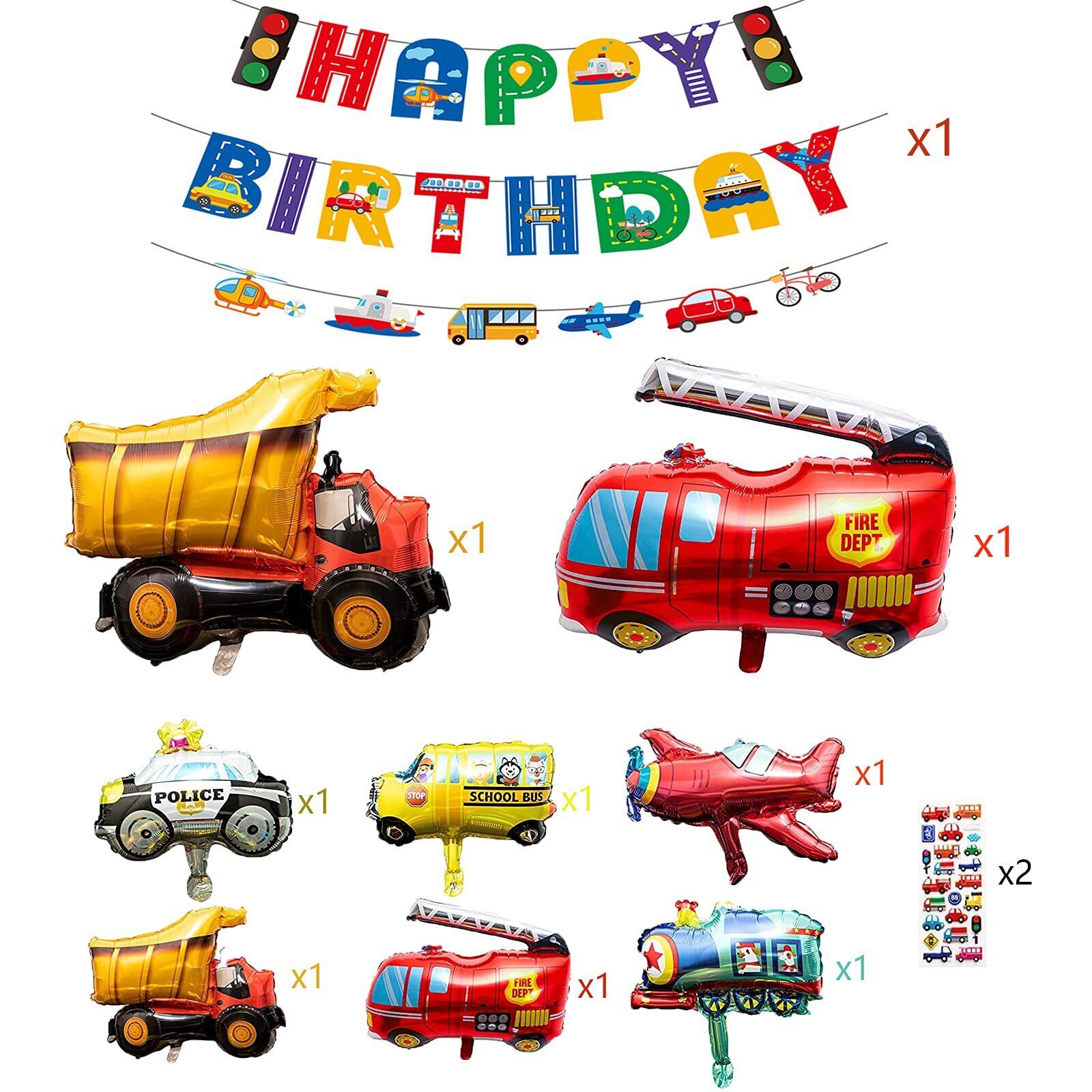 【12点セット内容】Happy Birthdayバナー*1、交通バナー*1、車アルミ風船*8、車ステッカー2個。