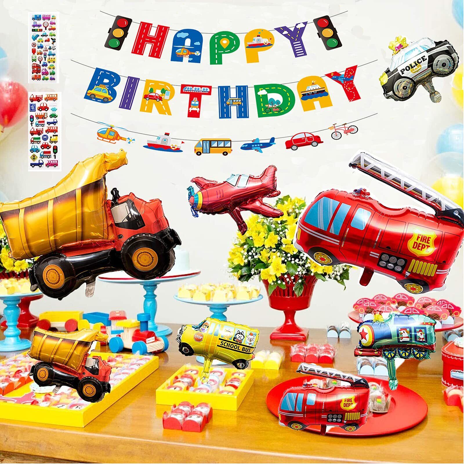 【子供のパーティーに最適】飛行機列車パトカーバスヨット消防車,立体的でボリュームもあるので、高級感がありながらキュートで華やかな デコレーションが作れます,すべての男の子の車の夢を満たします。お子様の大事な誕生日お祝いにおすすめです。