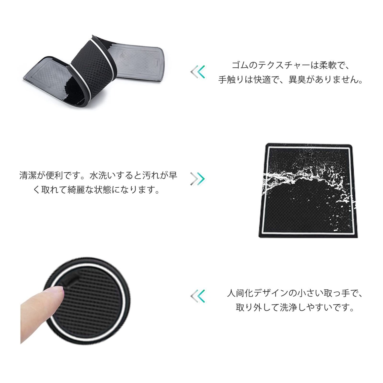 【実用性・滑り止め】ラバーマットの表面に模様のデザインが加わり、摩擦力が増し、滑り止め効果が良好で、置いてあるものに対してクッション性が良くてと衝撃吸収の効果があります。スマートフォンや鍵などの小物を置くと、運転中のカタカタ音や収納ポケットの傷を防止します。